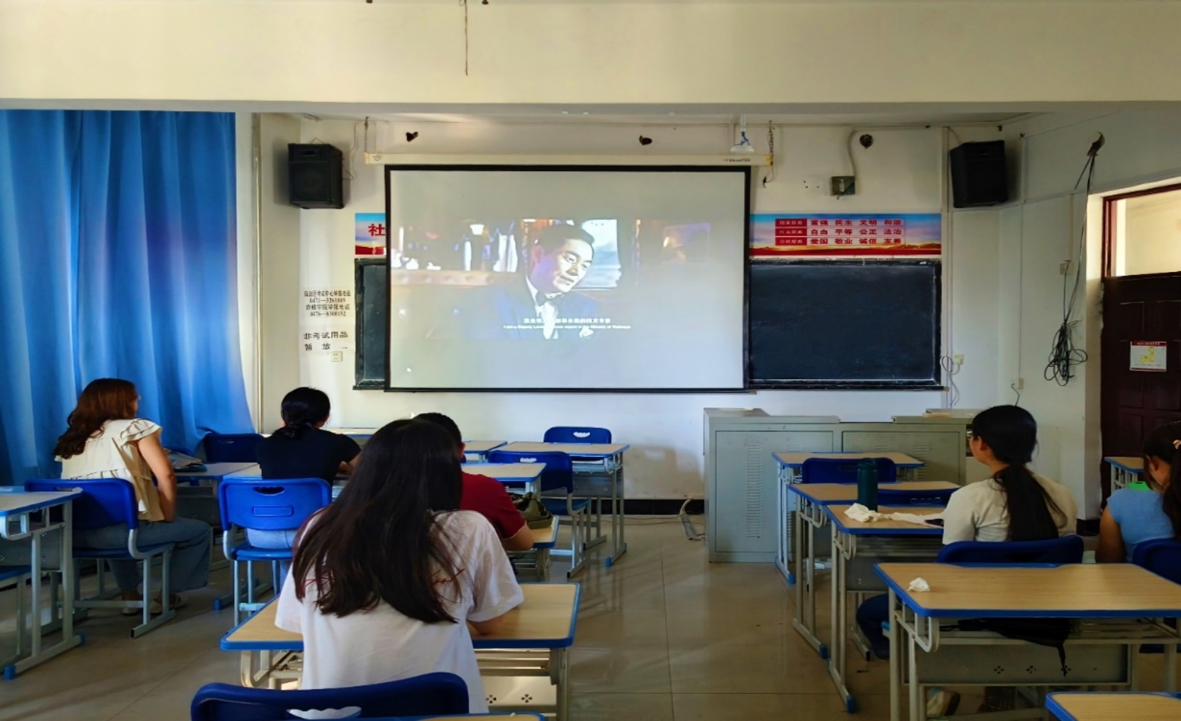 党总支副书记薛春艳带领新生观看爱国主义影片《红星照耀中国》,引导大家树立强烈的民族自尊心、自豪感。民族自尊心、自豪感是任何时期任何爱国者必须具备的情感。这对于振奋民族精神,凝聚全民族力量具有重大而深远的意义。