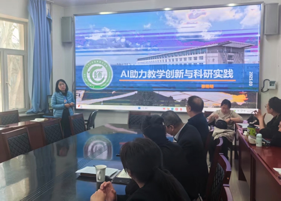 近日,教师教育学院“行知行”讲堂在博远楼306会议室举办“AI助力教学创新与科研实践”专题讲座,全体教师聆听讲座。