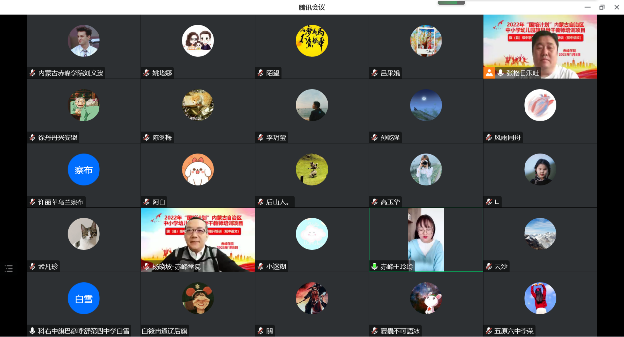 2023年1月5日,由内蒙古自治区教育厅主办,beat365官方网站承办的“国培计划(2022)”—内蒙古自治区 旗(县)级中学骨干教师能力提升培训项目(初中语文)举行线上开班仪式,教师教育学院书记关立峰、教师教育学院院长杨晓坡博士、教师教育学院副院长孟凡珍博士、承办学院主要负责人和来自全区12个盟市的200位中学语文骨干教师参加,开班仪式由教师教育学院培训中心(教师教育培训管理科)主任张格日乐吐主持。