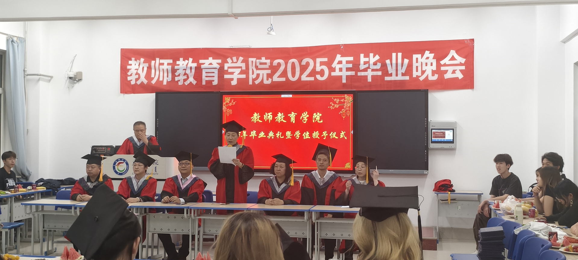 晚会伊始,教师教育学院党总支书记宣读毕业生名单,并向圆满完成学业的全体毕业生表示最热烈的祝贺。院长杨晓坡发表毕业讲话,他深情回顾了同学们在校期间勤奋学习、勇于实践的成长历程。他勉励毕业生们要胸怀家国,志存高远;要终身学习,勇于创新;要脚踏实地,坚韧不拔;要心怀感恩,回馈社会,将母校的教诲和期望化作前行的动力,在人生的广阔舞台上绽放更加绚丽的光彩。