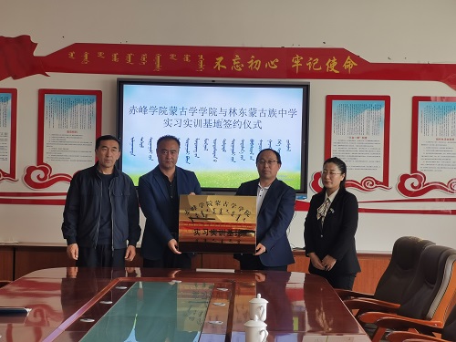 为进一步加强教育实习基地建设,提高人才培养质量, 5月19日至20日蒙古学学院院长韩长寿带队前往林东蒙古族中学、阿鲁科尔沁旗天山二中教育实践实习基地进行了实地走访调研考察并签署了实习实训基地协议及基地挂牌仪式。