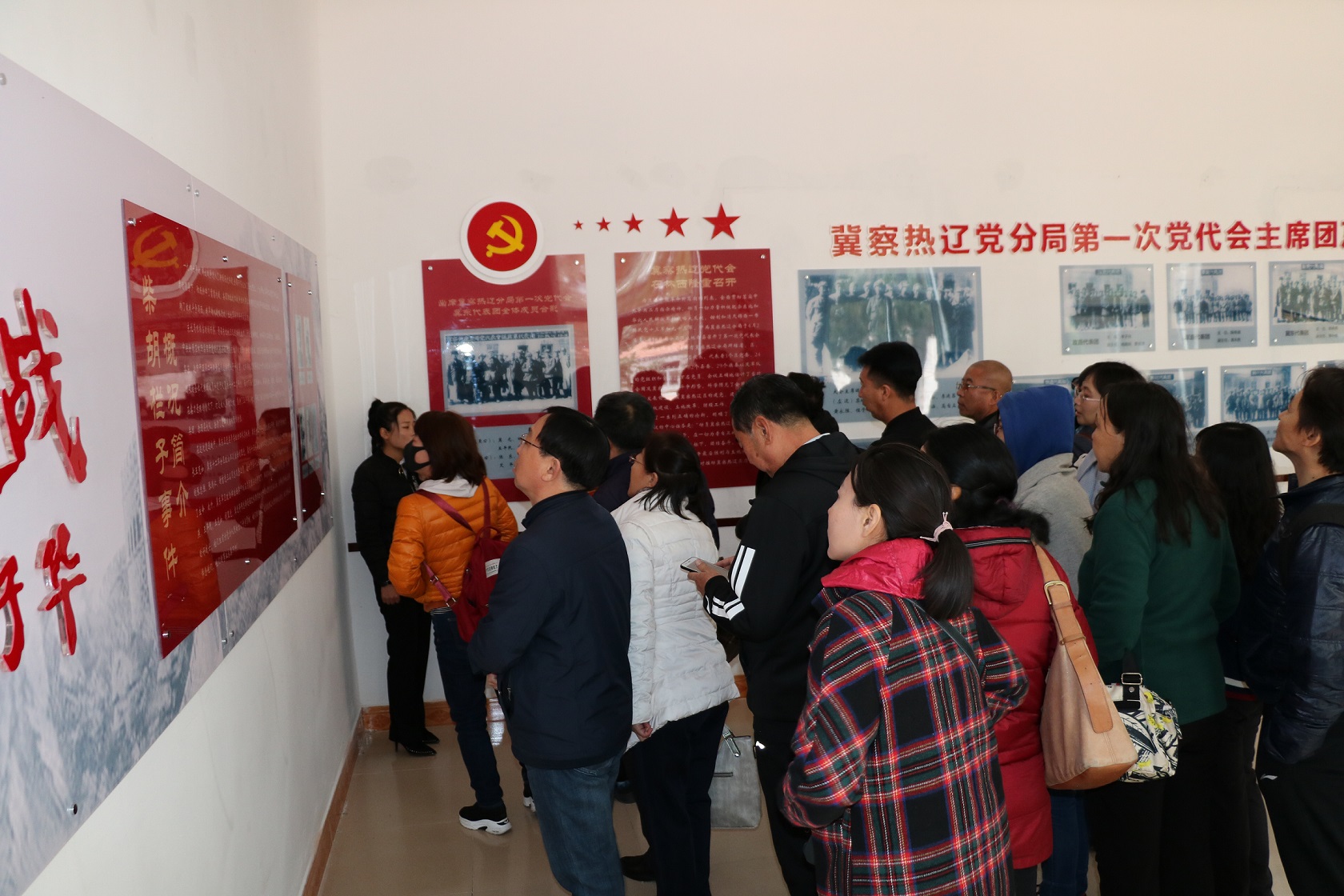 重温入党誓词仪式结束后,全体党员怀着对革命先烈的无比敬仰之情,在柴胡栏子战斗中牺牲的二十二位英烈墓前肃立默哀,寄托哀思,并来到革命烈士纪念馆参观学习。在讲解员的现场引导和生动解说下,全体教职工仔细观看每一件珍贵的文献史料、历史图片和战斗遗物,眼前仿佛看到了一幅幅革命先烈为了祖国和人民抛头颅、洒热血的波澜壮阔历史画面,大家为苏林燕、胡里光等革命英烈的崇高理想信念、高尚道德情操和为民牺牲的大无畏奉献精神所深深折服。