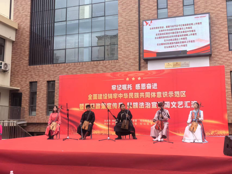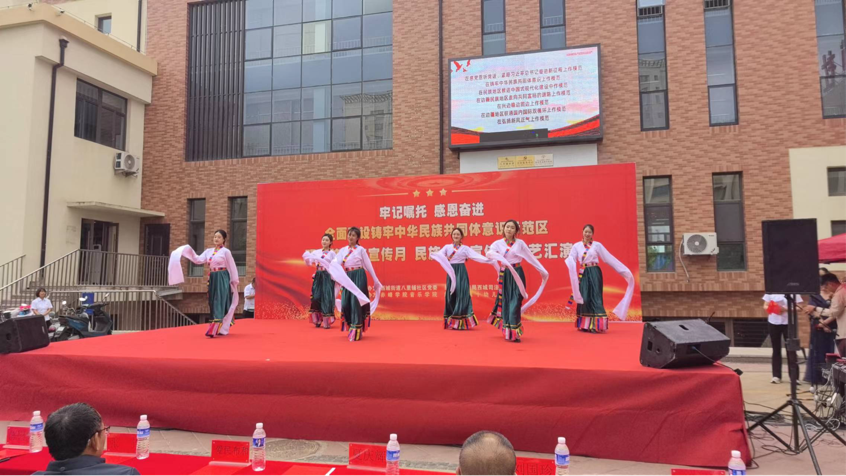 此次活动中音乐学院精心准备,组织部分同学在西城街道八里铺社区带来精彩表演:女声独唱《我爱你中国》和蒙古族特色马头琴合奏《白马》、藏族舞蹈《库玛拉》等等把精彩的文艺节目和真诚的祝福送到观众面前,让观众们感受到中华优秀传统文化的魅力和各民族的优秀文化。在校的同学通过开展民族团结进步主题班会,民族团结应知应会知识竞赛、观看民俗纪录片等形式组织学生积极学习习近平总书记关于加强和改进民族工作的重要思想。