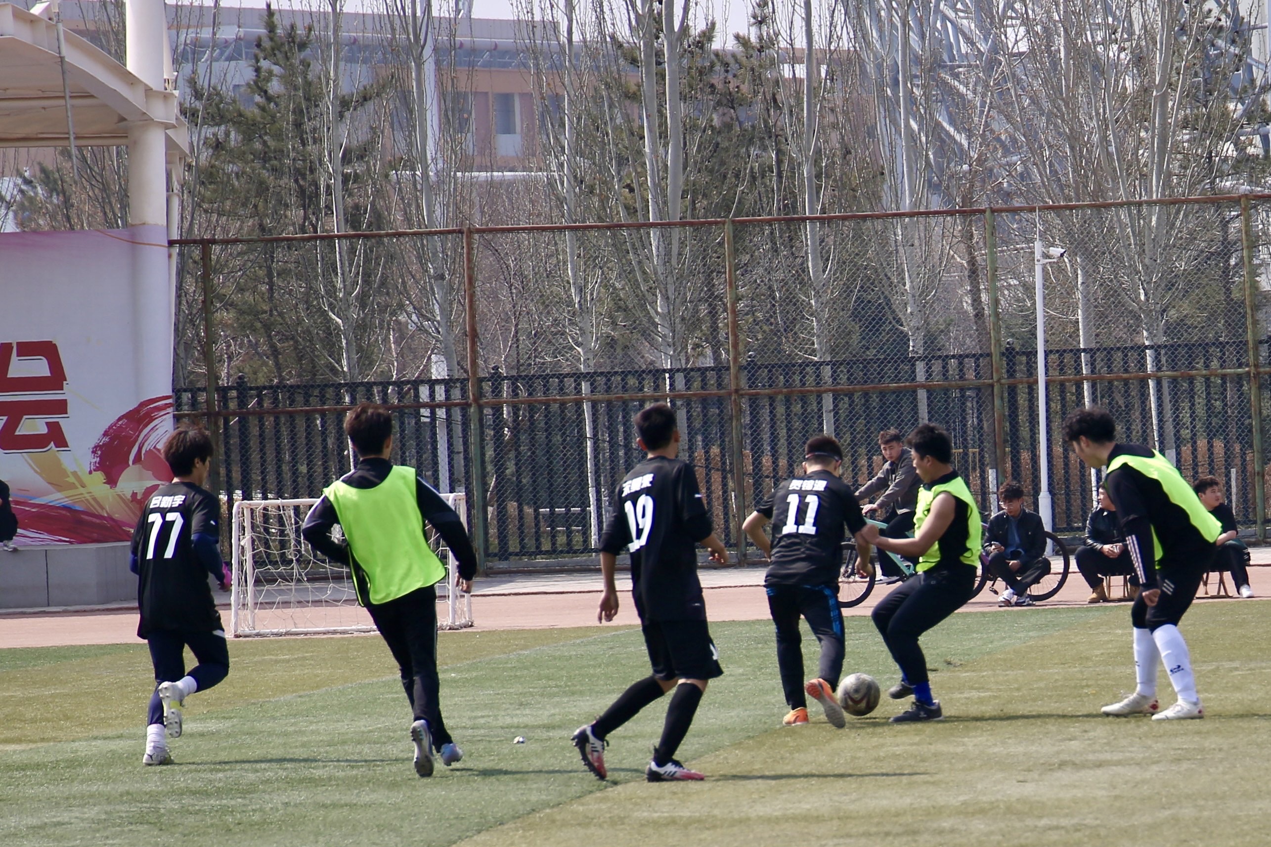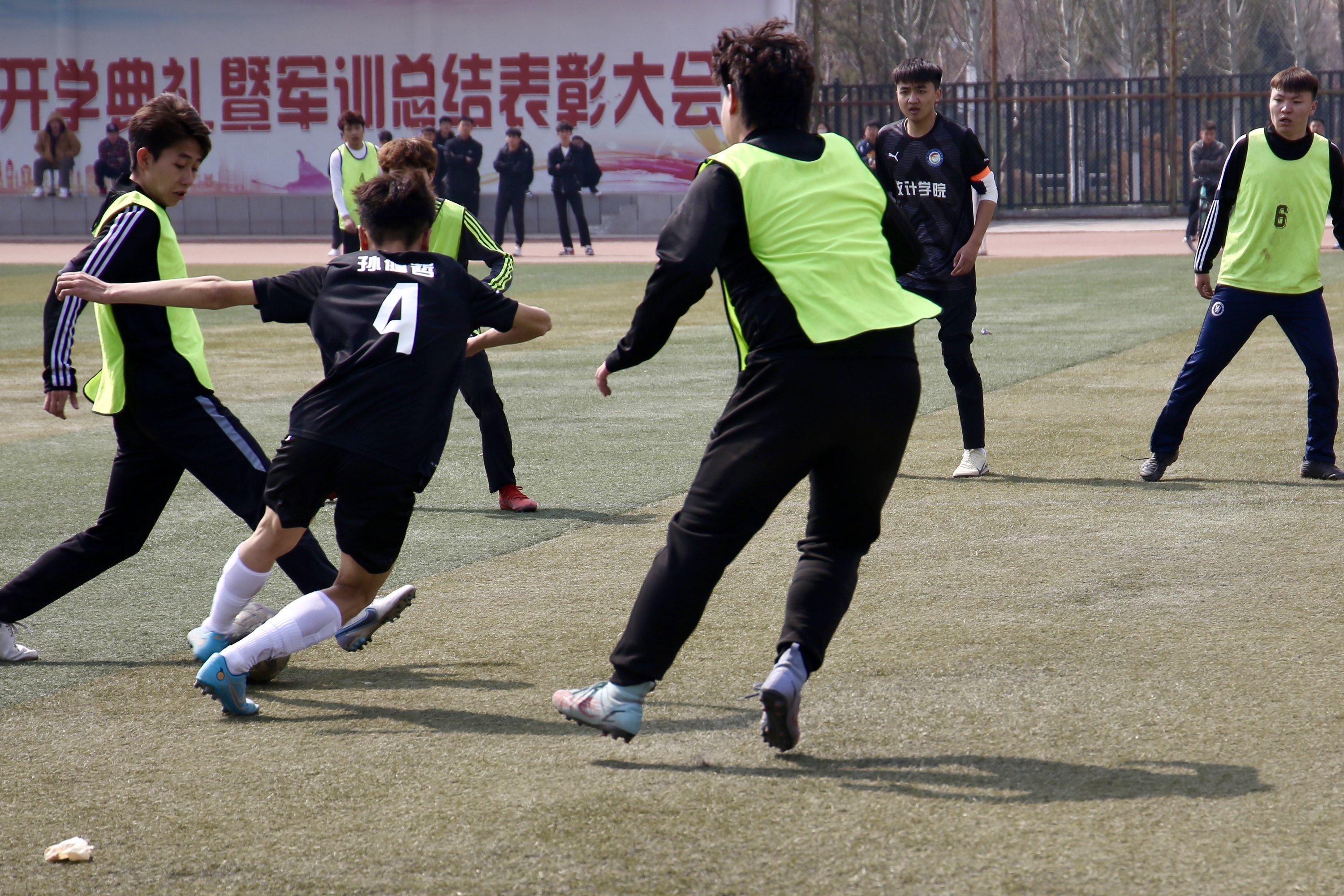 球员们如同离弦之箭,在绿茵场上尽情奔跑,展现出精湛的球技和无限的活力。他们灵活的身影、敏捷的动作,让人目不暇接,不时引来观众的阵阵喝彩。这不仅是一场体育竞技的较量,更是同学们追逐梦想、展现风采的舞台。
