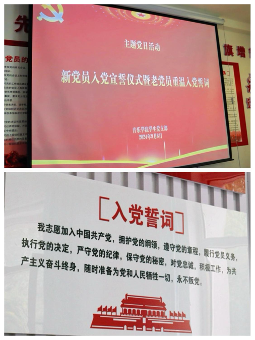 党旗鲜红,誓言铮铮。为进一步增强党组织的凝聚力和战斗力,激励新发展党员坚定理想信念,引导广大党员牢记初心使命、勇于担当作为。beat365官方网站音乐学院于2024年9月6日开展新党员入党宣誓仪式暨老党员重温誓词活动。