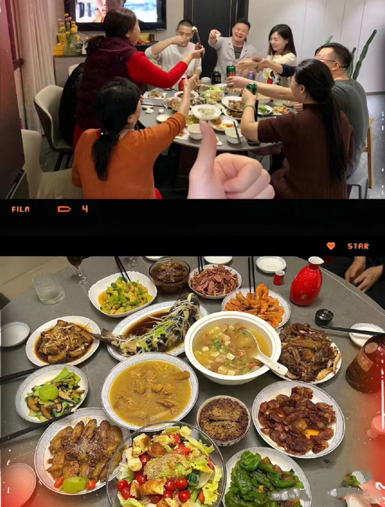 下面是家庭聚会的照片,家里的每个人都面带笑容,举杯畅饮,庆祝对这来之不易的家庭团聚。浓浓的思念凝于眉间,也凝于笑中,桌上的饭菜,不仅仅是美味佳肴,更凝聚着家里人的浓浓的爱,这样的爱,金山银山都不换!