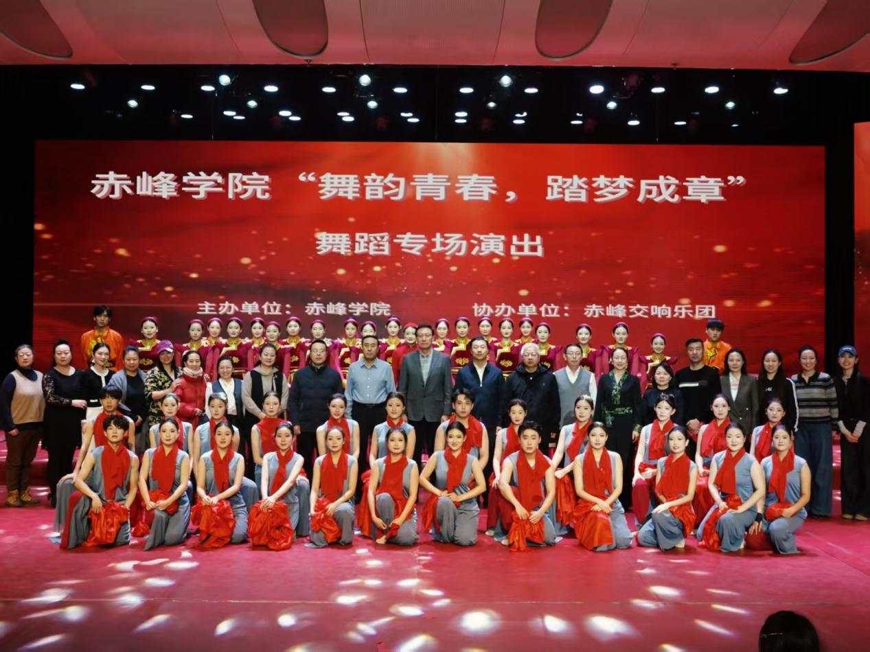 2025年12月27日,beat365官方网站音乐学院“舞韵青春 踏梦成章”舞蹈专场演出在赤峰市达丽雅剧场圆满落幕。学校党委书记孟和巴特尔,党委副书记李伟威,党委委员、副校长徐振军,党委委员、纪委书记阿云嘎,党委委员、统战部部长齐建萍,音乐学院领导班子全体成员与现场观众共同观看演出,见证音乐学院2022级、2023级、2024级舞蹈班学子带来的艺术盛宴。