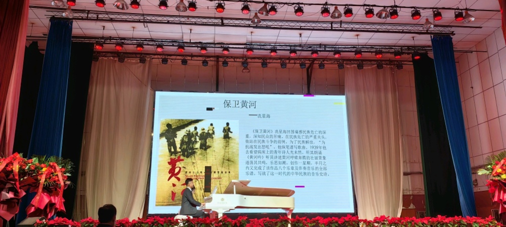慷慨激昂的旋律将音乐会的气氛推向顶峰,《保卫黄河》以短促跃动的曲调、铿锵有力的节奏,全景展示出抗日军民英勇战斗的壮丽场景,更展现了中国人民的不畏强暴、顽强不屈的民族精神。