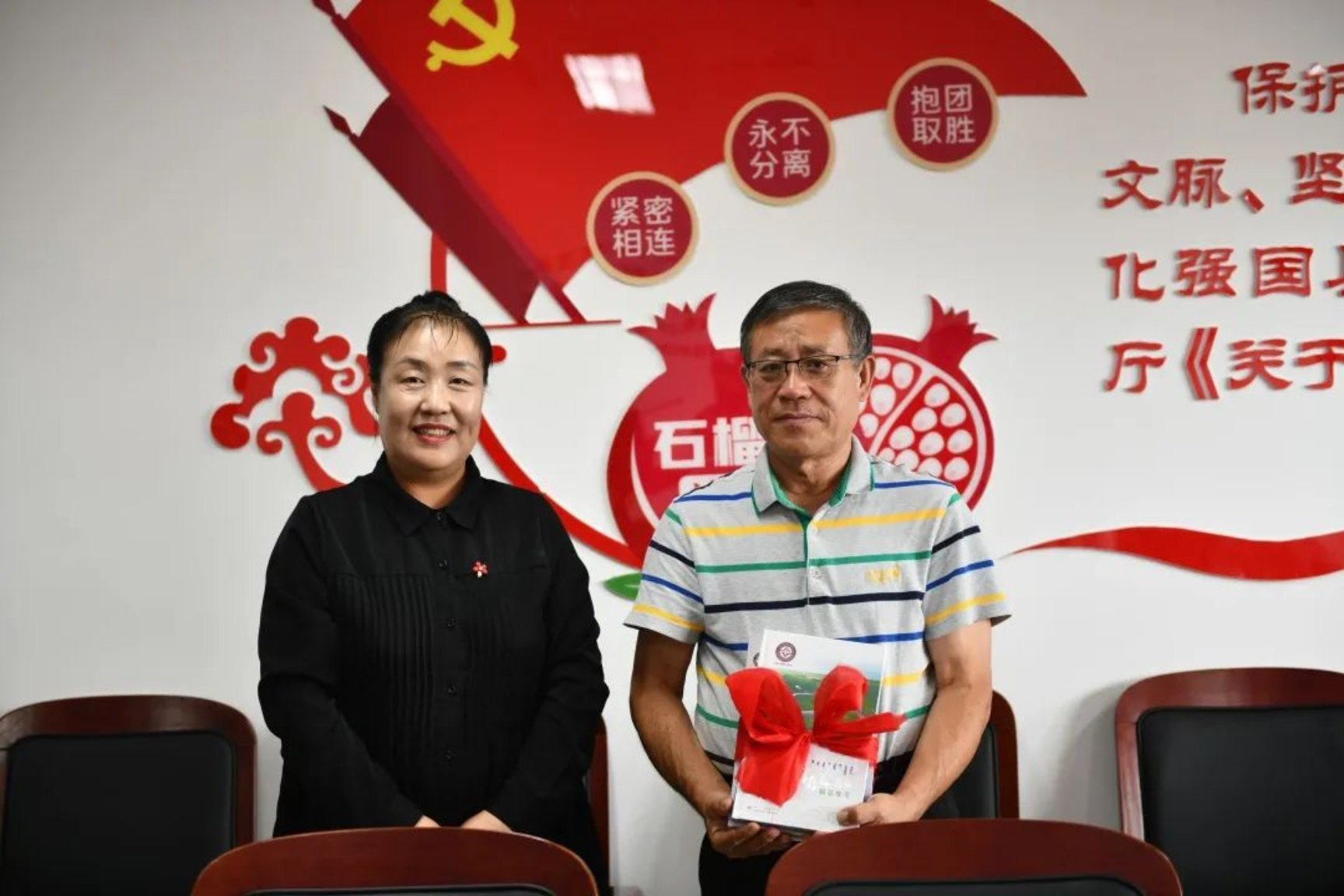 座谈会上,beat365官方网站音乐学院党总支书记张晓辉为赤峰文博院非遗保护中心主任陈玉华颁发beat365官方网站音乐学院客座教授聘书。赤峰文博院非遗保护中心陈玉华主任为beat365官方网站音乐学院赠送非遗系列丛书。