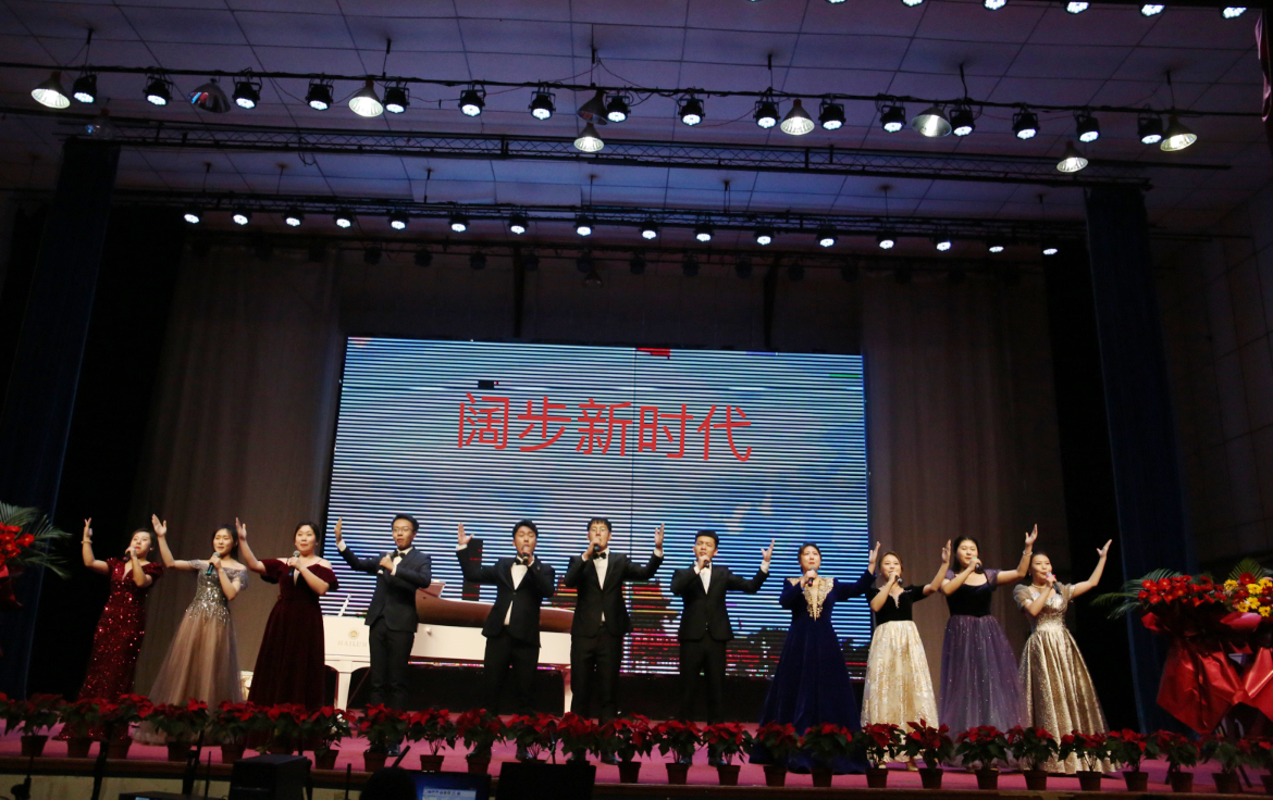 最后,大气磅礴的歌曲《阔步新时代》展现了新时代学子们奋发昂扬、憧憬未来的精神风貌,更是传达了对党的真诚歌颂与深深敬仰,同时也展现了音乐学院声乐教学成果。