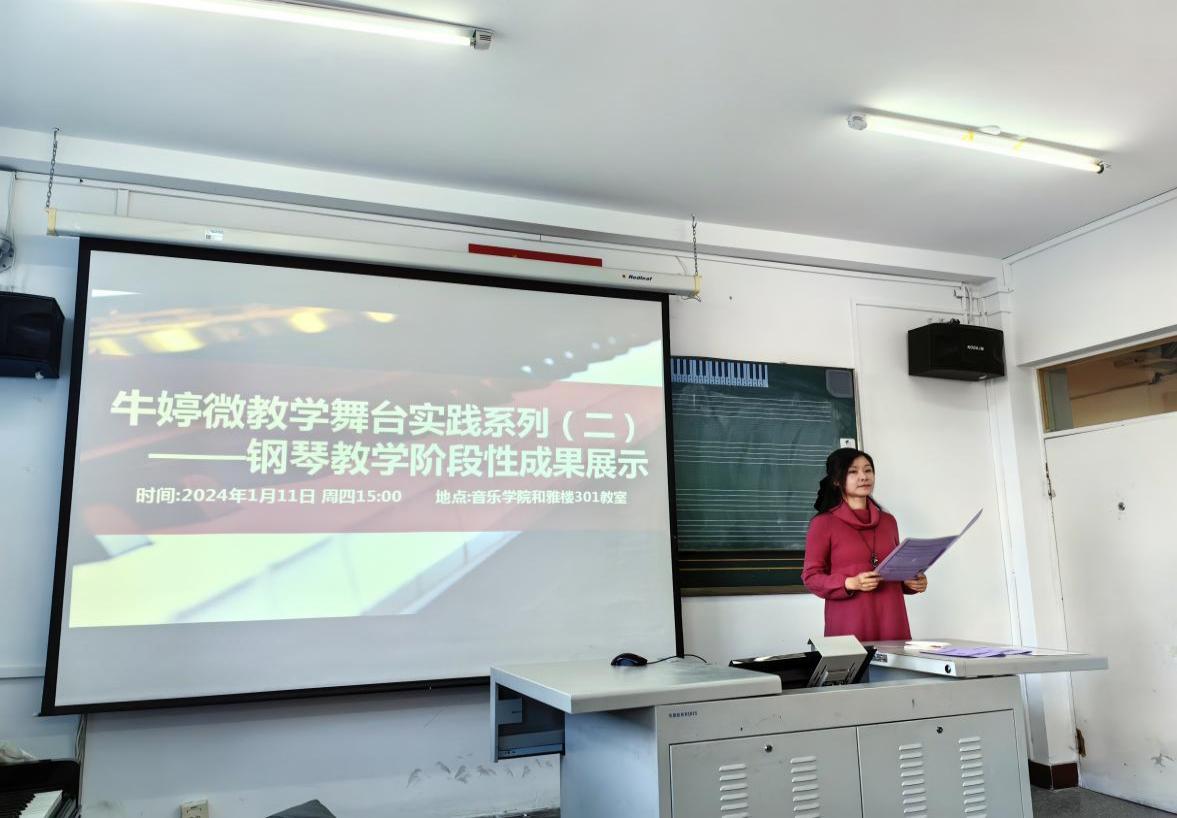 2024年1月11日,钢琴教研室在和雅楼301教室举办了《牛婷微教学舞台实践系列(二)——钢琴教学阶段性成果展示》活动。