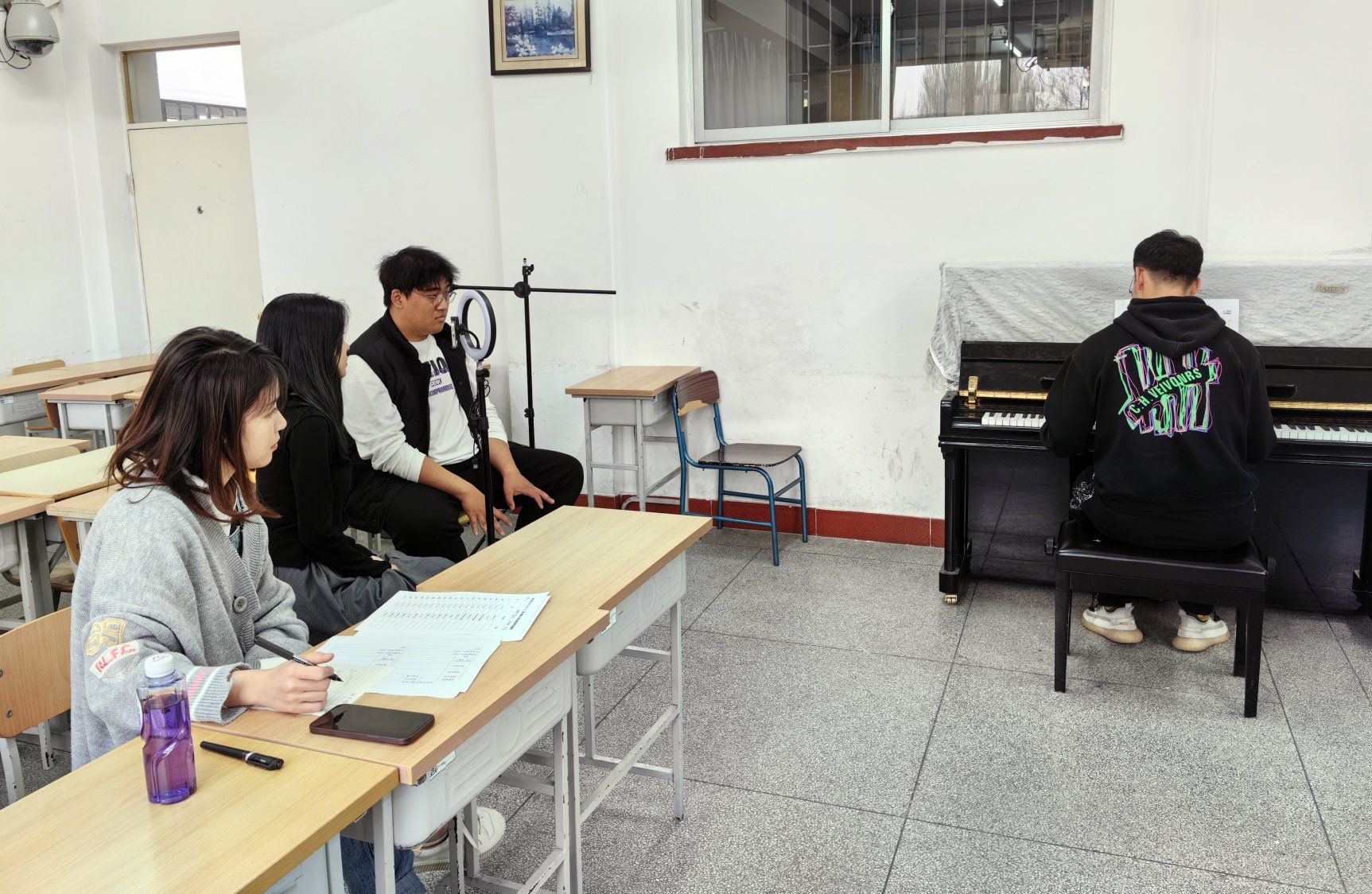 本次考试包括钢琴技巧课和即兴伴奏两项内容,共设立七个考场,共有205名学生参加了考试。在钢琴教研室主任郭丽艳统筹安排下,教学团队负责人杨雯涵、蒋莉莉、肖然的积极协助下,圆满完成了这次过程性考试。