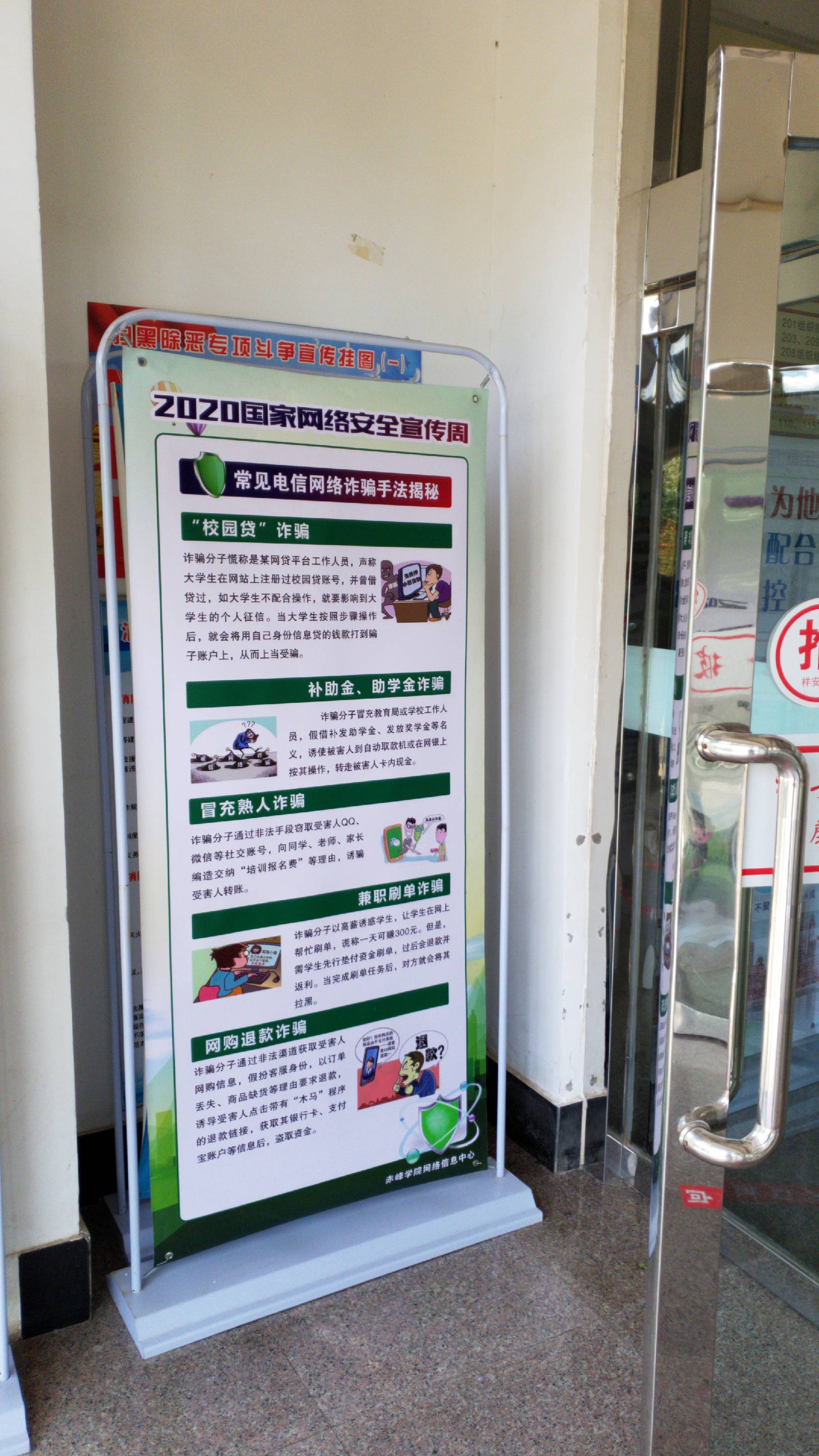 根据自治区教育厅网络信息安全实例材料,制作网络安全宣传品,在校园内宣传栏中粘贴“网络安全宣传”海报及展板。