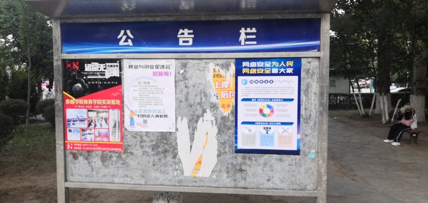 网络安全宣传海报、展板主要内容以网络安全法、网络安全法的三大原则、网络安全必备技能之网络交易、网络交易小提示、学生网络安全小知识、什么是网络安全、文明上网自律公约、设置浏览器的安全等级、下载软件和资料时注意事项、密码设定的规则、个人账号和密码的保护、公用计算机个人信息的保护、培养网络安全意识、如何防范个人信息泄露等。这些内容平均分布在公共教室楼宇、学校公共宣传栏、学生公寓宣传栏等地(见下图)。