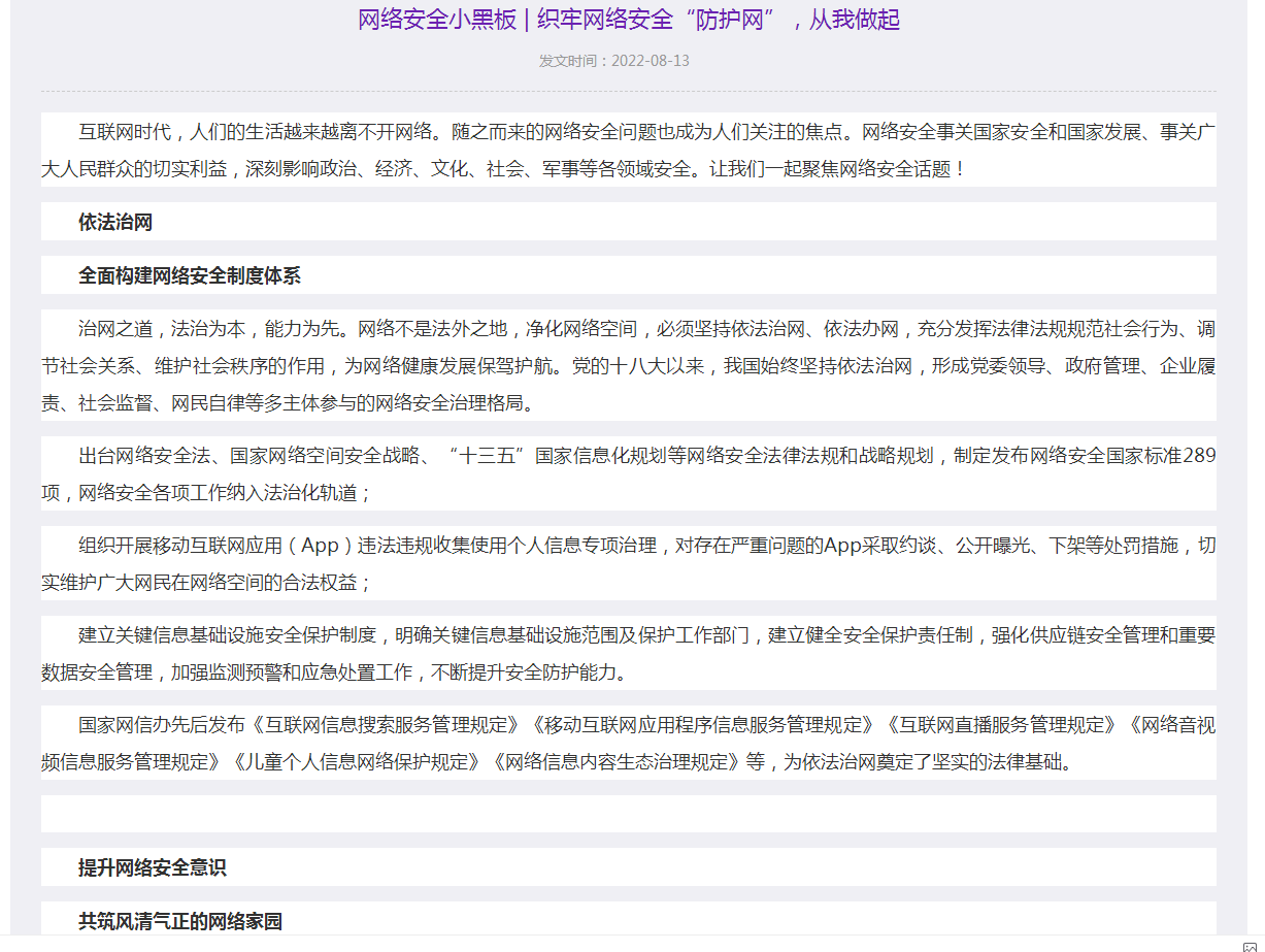 2.“网络安全校园日”时间:2022年9月6日