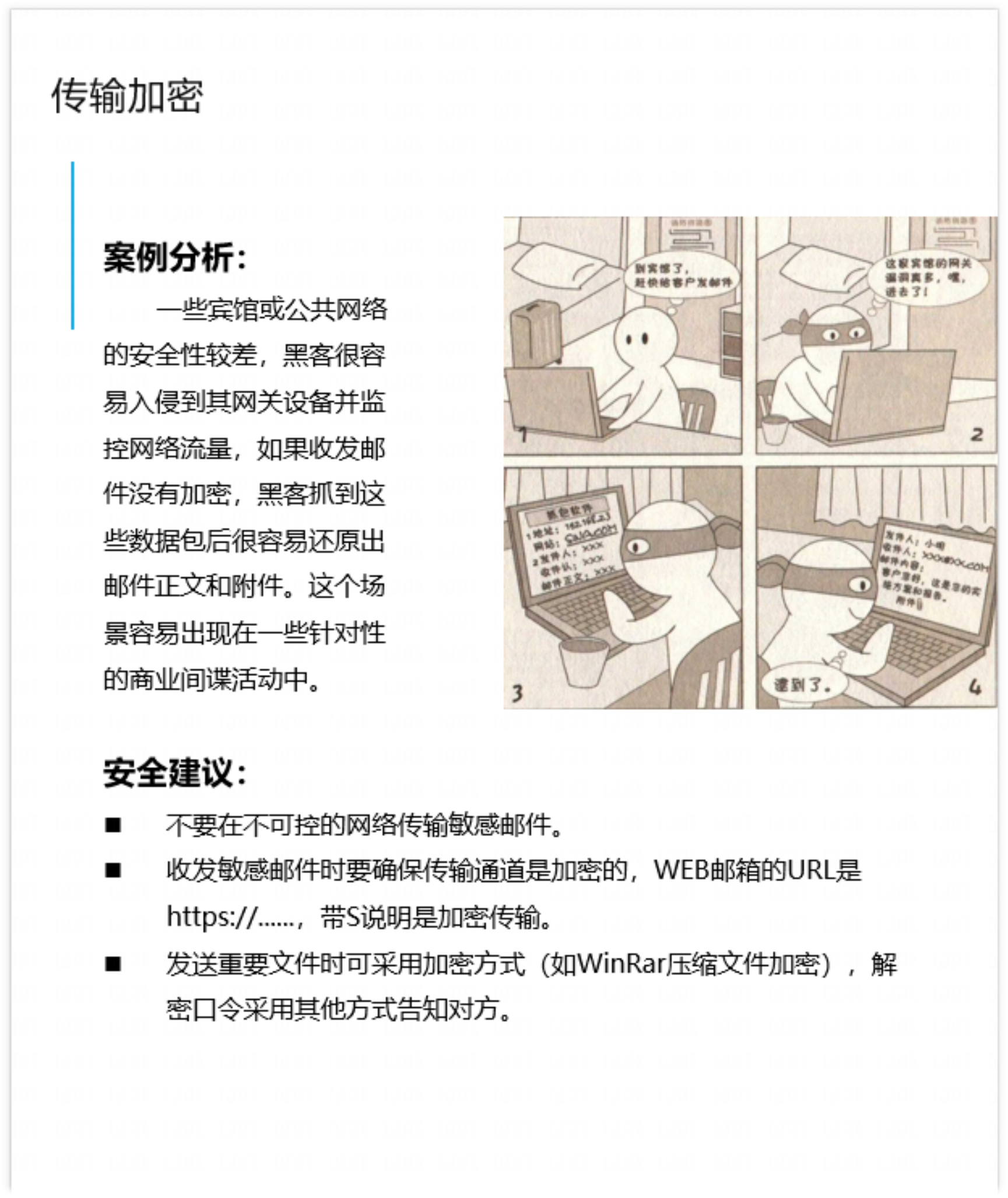 有些用户习惯将重要文档、邮件、附件等长期保存在邮箱中,将邮箱作为网盘使用,一旦邮箱被攻击,里面保存的重要资料将全部遗失,甚至造成泄密和财产损失。因此,这种行为一定要纠正。