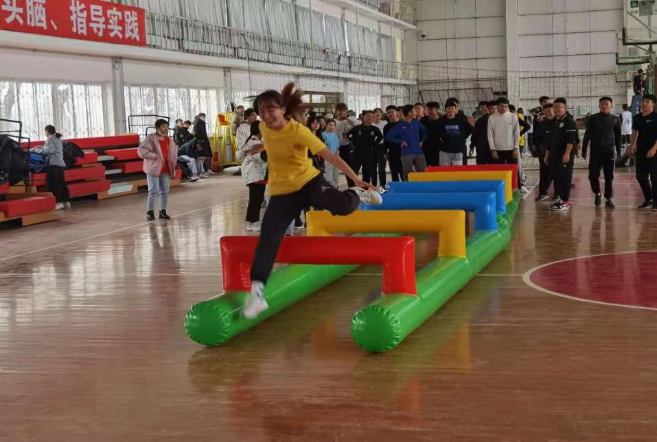 随后,同学们又完成了“挑战150秒”、“激情碰撞”、“气模接力赛”和“雷区取水”等团建拓展项目。