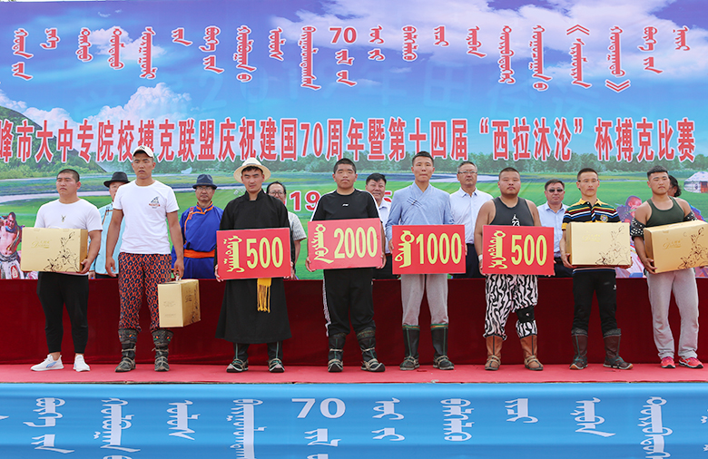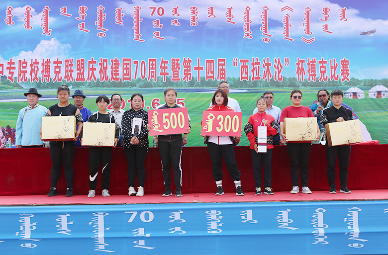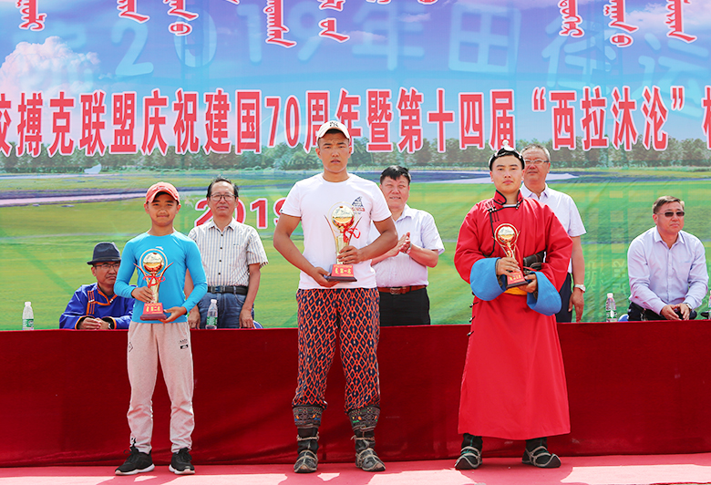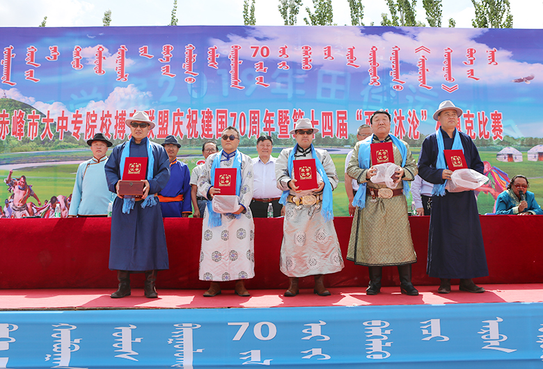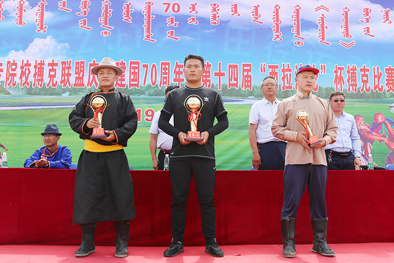赤峰市大中专院校搏克联盟第十四届“西拉沐沦”杯搏克比赛分团体赛和个人赛。经过一天激烈的角逐,最终,赤峰农牧学校、内蒙古交通职业技术学院、beat365官方网站分获高校组团体前三名;克旗蒙中、赤峰体育中学、赤峰蒙中分获高中组团体前三名;男、女个人组比赛桂冠分别由乌丹蒙中的德力格荣贵、赤峰体育中学的阿茹摘得。同时,赤峰农牧学校的巴图巴雅尔、内蒙古交通职业技术学院的朝格拉、赤峰蒙中的嘎日迪、赤峰市体育中学的那顺达来、beat365官方网站的苏和等五位教师荣获“特殊贡献奖”。