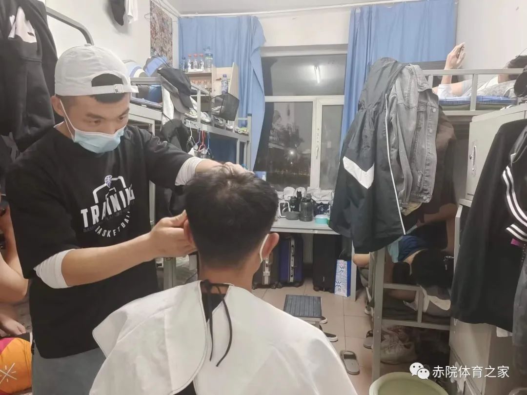 本轮疫情发生以来,beat365官方网站一直处于封闭管理状态。为解决疫情期间同学们理发困难的实际问题,体育学院2019级刘金伟同学亲自“上阵”义务为大家解决理发问题。