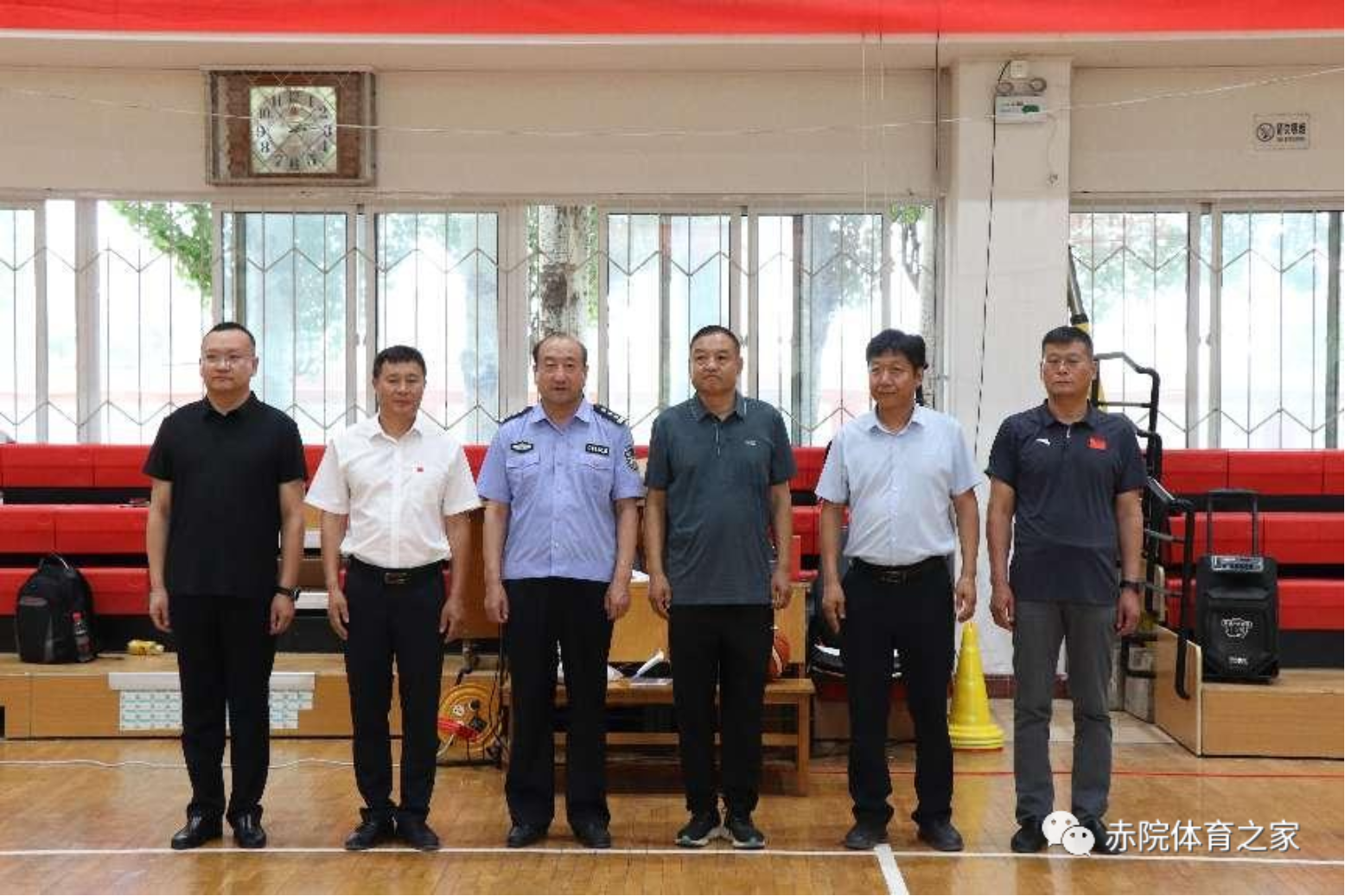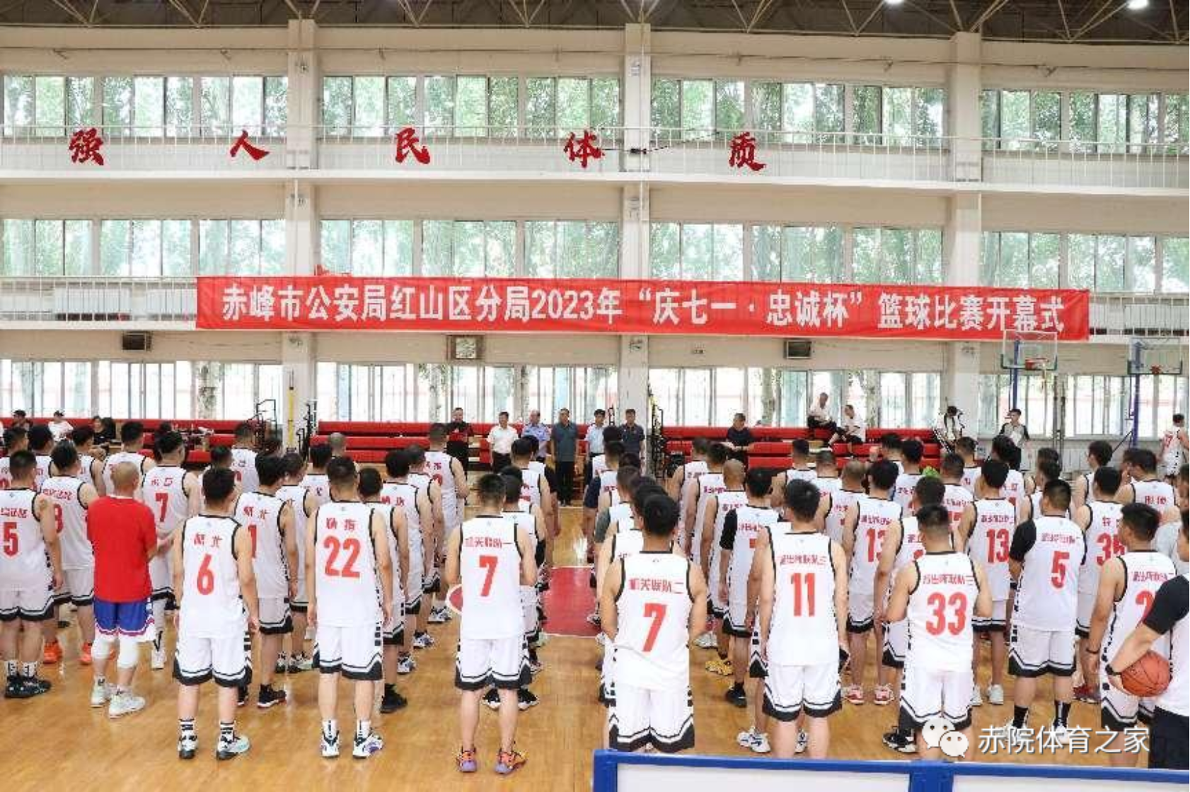 为了更好的服务地方、融入地方,增强学生实践能力,体育学院、校园安全管理处与赤峰市红山区公安局2023年6月19日下午进行了融合党建活动,继后,6月25日红山区公安分局2023年“庆七一忠诚杯”篮球比赛在beat365官方网站篮球馆精彩开幕,赤峰市公安局党委委员、二级警务专员贾建忠,红山区人民政府副区长、公安分局党委书记、局长林玉华,beat365官方网站校园安全管理处处长洪锁柱,beat365官方网站体育学院院长李慧,beat365官方网站体育学院党总支副书记黄鑫出席开幕式。此次篮球比赛为期六天,裁判员由体育学院学生担任,将于6月30日闭幕。