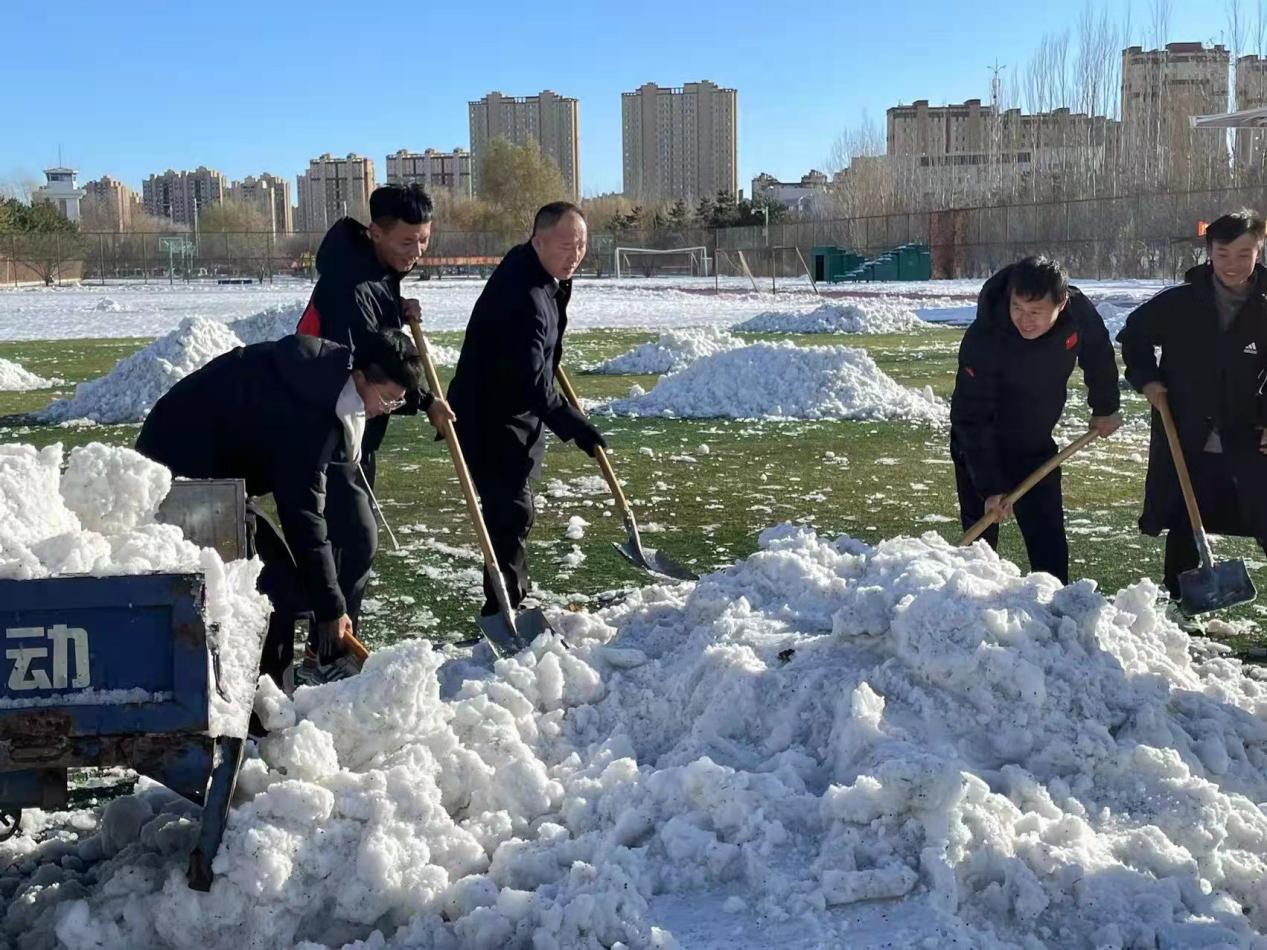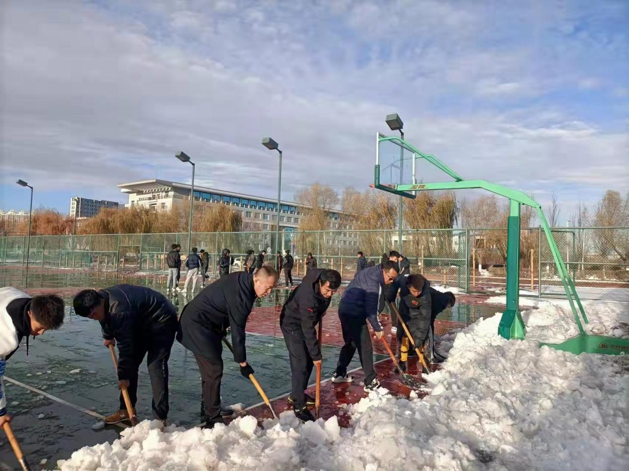 恰逢立冬,大雪聚至。为保障师生户外活动安全,体育学院于11月10日在西操场及部分篮球场地组织开展了“我为群众办实事”之志愿扫雪除冰活动。