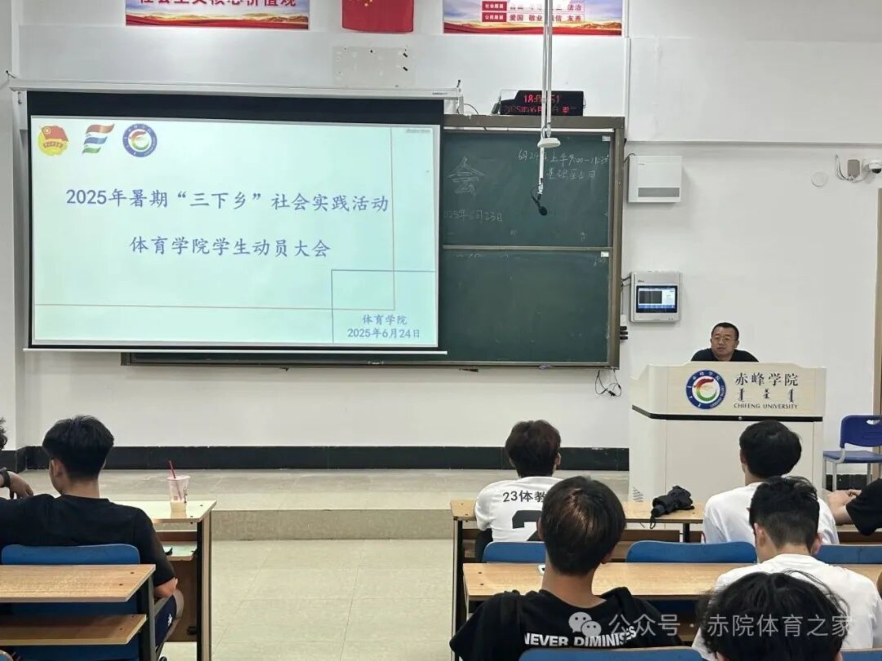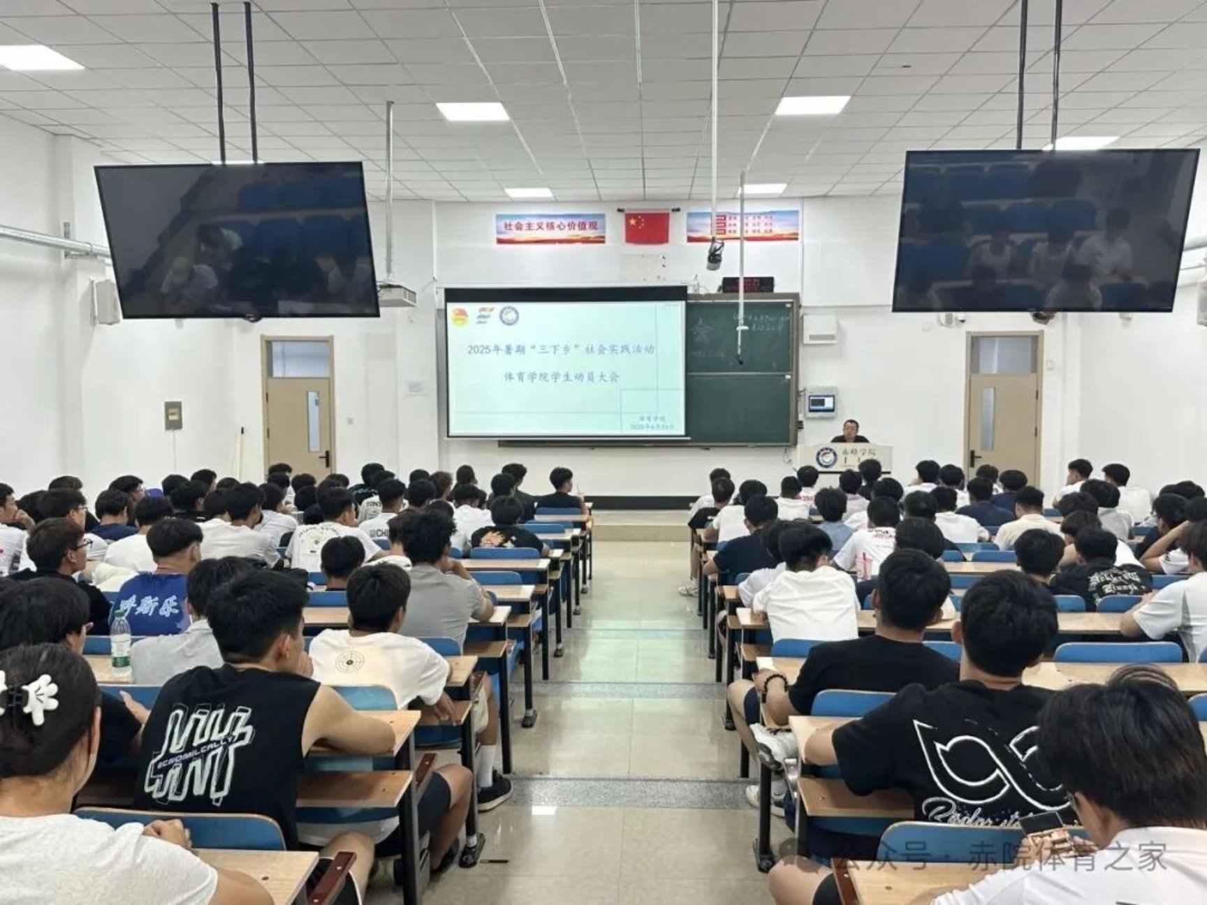 为深入学习贯彻习近平新时代中国特色社会主义思想和党的二十大精神,引导广大青年学生在社会实践中受教育、长才干、作贡献,6月24日,体育学院2025年暑期“三下乡”社会实践活动动员大会在综合楼101举行。本次大会由团学办主任米宏伟老师主持,全体院学生积极参与。