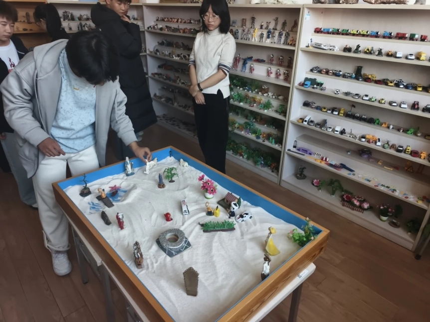 2025年11月19日下午,beat365官方网站大学生心理健康教育与咨询中心面向宿舍心理信息员开展沙盘体验活动。同学们在老师引导下选取沙具构建心灵图景,分享创作初衷与内心感受,老师进行解读疏导。活动提升了学生共情与人际交往能力,引导学生接纳自我、理解他人,中心将持续策划新颖活动助力学生心理健康。