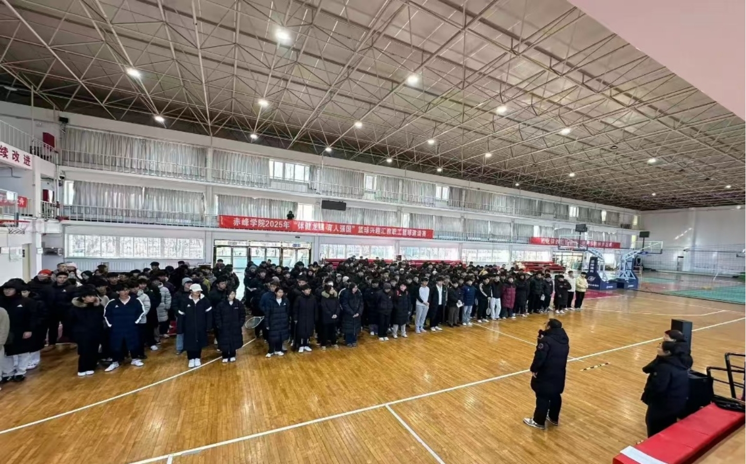 2025年11月27日,体育学院在篮球馆召开安全教育大会,米宏伟老师主持,杨珊珊、邢也建老师出席,全体学生参会。会议强调校园安全与日常规范,部署宿舍管理、课堂纪律等工作,严禁吸烟与违规电器,要求保持宿舍整洁、遵守课堂秩序。活动增强学生安全与规则意识,为文明校园建设奠基。