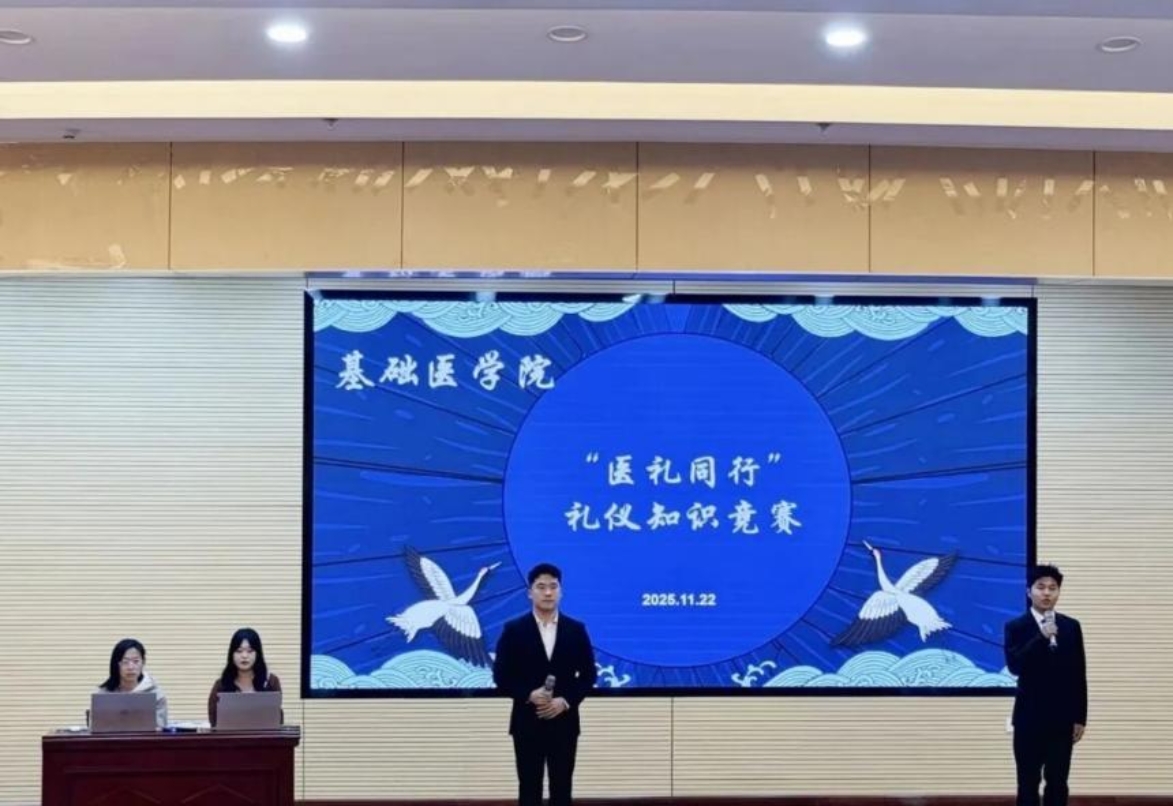 2025年11月22日,基础医学院在博物馆二楼学术报告厅举办“医礼同行”礼仪知识竞赛。活动设“基础礼仪必答”“临床应变”“医患沟通演绎”等环节,最终田湘君团队获一等奖,刘梦燊、丁海丹团队获二等奖,李雨嘉、闫雅璇、葛平团队获三等奖。此次活动不仅是对医学生礼仪素养的全面检阅,更是基础医学院落实“三全育人”理念的生动实践。