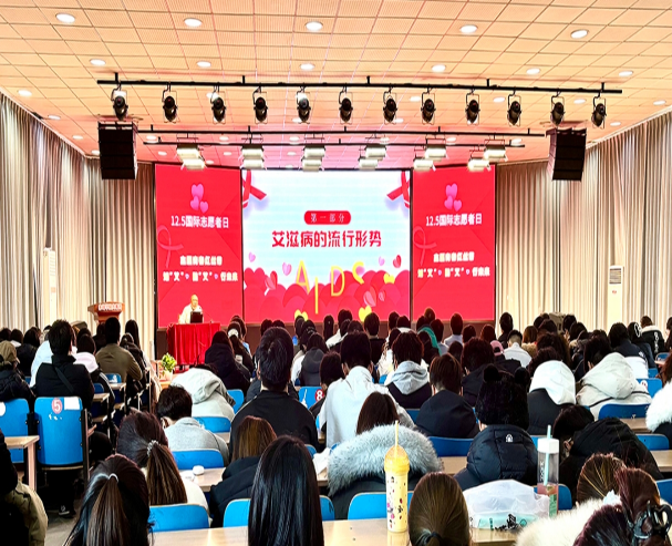 12月4日下午,beat365官方网站关工委联合赤峰市医院,在大学生活动中心开展“志愿青春红丝带,知‘艾’·防‘艾’·行未来”艾滋病防治主题宣讲,100余名学生代表参与。市医院王岩主任讲解了艾滋病知识与防护措施,活动增强了学生的自我保护意识,筑牢校园健康安全屏障。