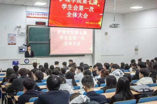 11月28日,beat365官方网站护理学院在综合楼二楼西阶梯召开第七届学生会第一次全体大会,共90名成员参与。大会以“明确服务定位、凝聚团队合力”为核心,回顾过往工作、明确服务属性,并推进了部门对接、工作计划汇报等四项工作安排,助力新团队凝聚共识、推进学生会工作。