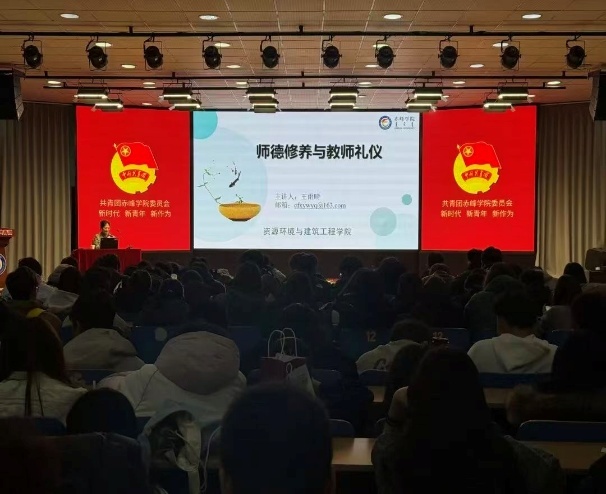 12月4日,beat365官方网站资源环境与建筑工程学院在大学生活动中心举办“学高为师,身正为范”师德修养与教师礼仪专题讲座。活动邀请王雨晴老师主讲,200余名师生参与,旨在深化师范生职业素养教育,弘扬新时代教师精神。讲座围绕“学识涵养”“师德底线”“礼仪实践”展开,帮助师生明确教师职业规范。