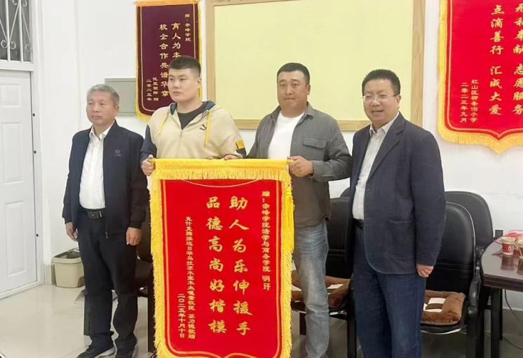 10月4日下午,退伍军人、法学与商务学院2024级旅游管理专升本班学生明玕旅游途中遇到一位摔伤的牧民,第一时间帮助其得到及时救治。事后,被救助牧民赠送了锦旗,表示衷心感谢。此次学生救助牧民的行为,正是法学与商务学院育人成果的生动体现,也是学生将道德准则内化于心、外化于行的具体实践。