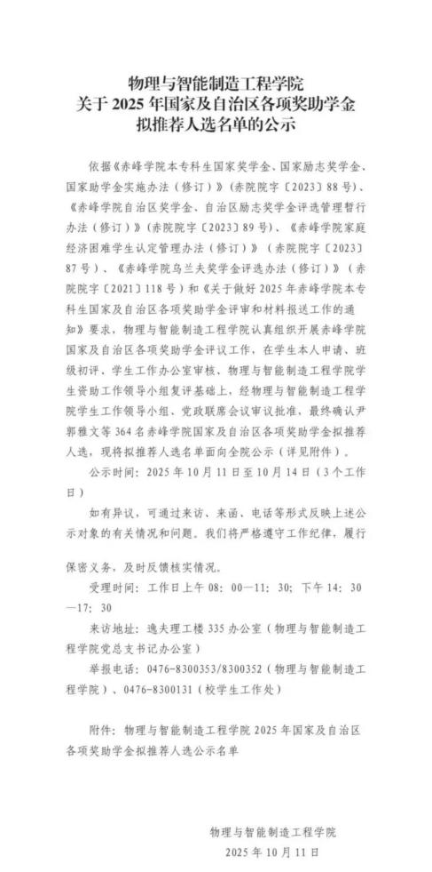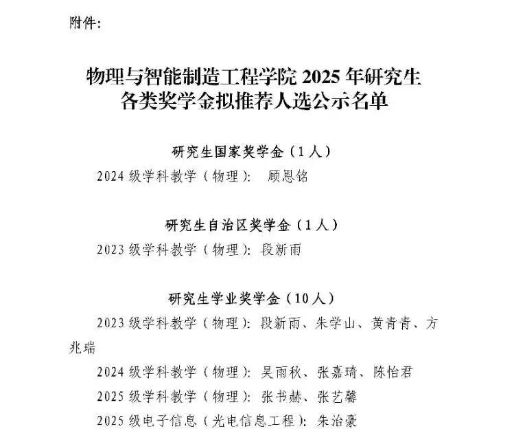 关于2025年研究生奖学金拟推荐人选名单的公示