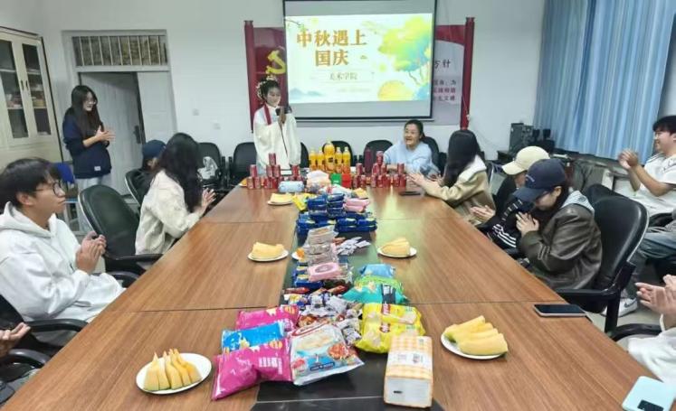 10月6日晚,美术学院为留校的学子们精心策划了一场中秋节联欢会。学院党总支副书记王高飞代表学院班子向留校学生送上节日祝福,并与他们齐聚一堂,让留校学生在异乡也能感受到家的温暖和爱的力量。此次活动不仅丰富了留校学生的节日生活,更增强了同学们的归属感与集体凝聚力。
