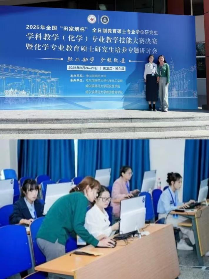 2025年9月26日至28日,全国"田家炳杯"全日制教育硕士专业学位研究生教学技能大赛决赛在哈尔滨师范大学隆重举行。2024级学科教学(化学)专业研究生杜馨茹同学在赵丽敏副院长的全程指导下,最终荣获全国三等奖。本次获奖是我院深化教育硕士专业学位研究生培养模式改革的重要成果。