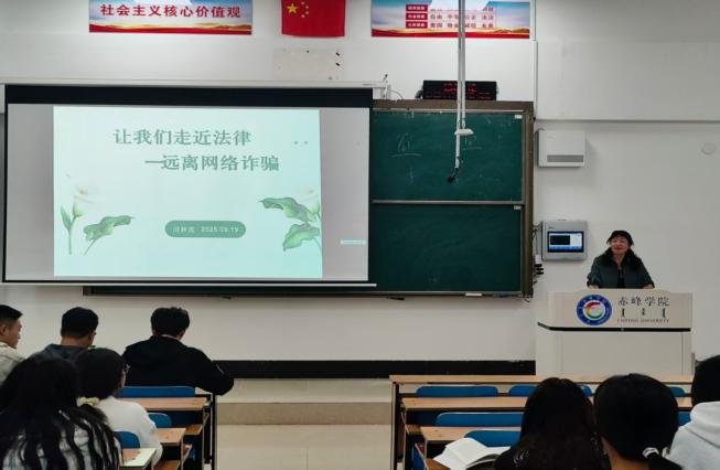 9月25日,法学与商务学院开展主题讲座,教师为2025级新生讲解网络诈骗危害与防范方法,帮助新生增强法律意识、提升防骗能力,推动新生安全教育工作开展。