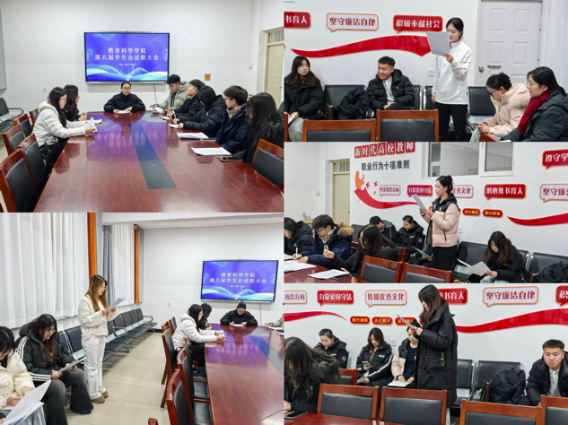 1229日,教育科学学院第八届学生会在文科楼205召开述职大会,各部门负责人围绕年度工作成就、现存问题及2026年计划述职,团总支负责人张韵姣老师点评并提改进要求,大会复盘工作、明晰方向,助力教育科学学院学生工作提质。