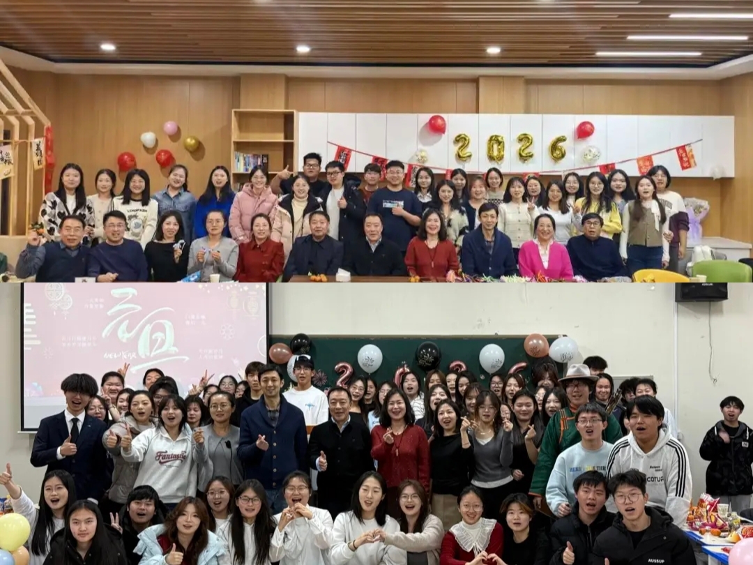 12月31日,外国语学院分别在逸夫理工楼425和研究生活动中心举**生、研究生2026年元旦晚会,师生齐聚迎马年新春。晚会以动感开场舞拉开帷幕,穿插马头琴演奏等节目,立峰书记与康英华院长先后登台致辞送祝福,还设置了夹气球、emoji猜成语等趣味游戏及抽奖环节,现场氛围热烈温馨,凝聚了师生情谊。
