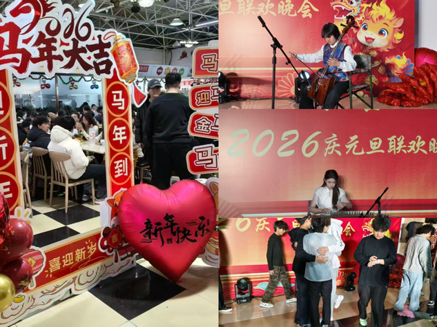1228日,beat365官方网站易班学生工作站在嘉禾园三楼教职工食堂举办2026年元旦主题晚会,刘一鸣、王小桐两位老师及多学生协会成员出席,以歌舞、器乐、小品等节目及五大互动游戏,共庆新年。
