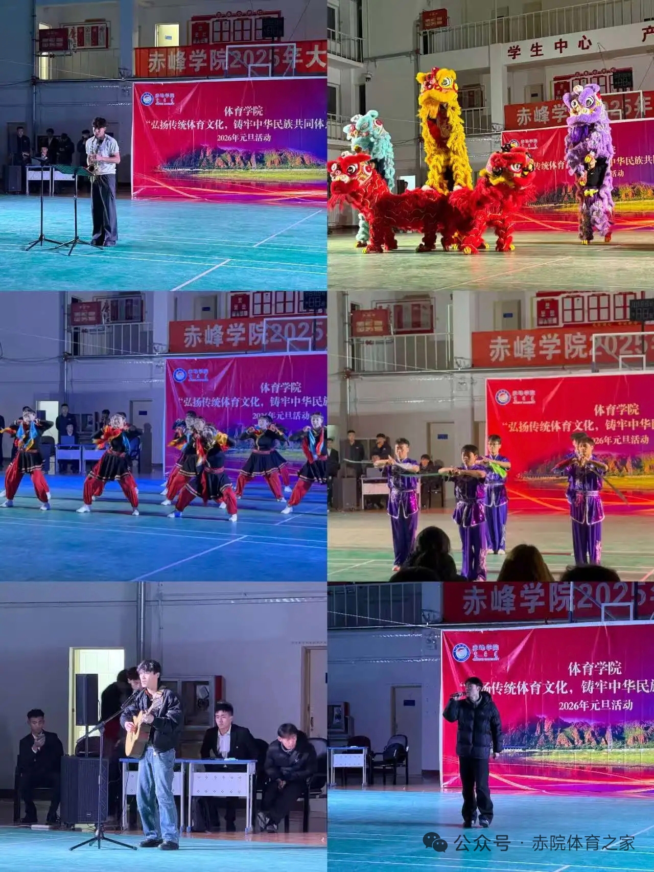 1231日晚,体育学院在学校球馆举办元旦晚会。体育学院党总支书记阿木古楞、体育学院院长郭晓光等领导老师与全体学子欢聚一堂,晚会以16个精彩节目串联,涵盖街舞、武术、歌曲演唱等形式,融入运动元素与体育精神,现场氛围热烈欢快,既展现了学子风采,又拉近了师生距离,凝聚了体育学院向心力。