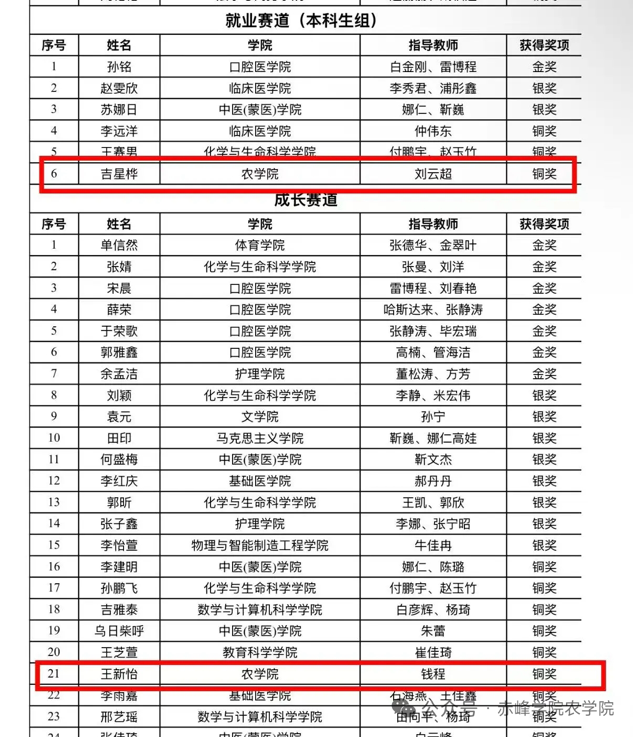 beat365官方网站第六届大学生职业规划大赛(202510月启动)圆满落幕,7212名选手参赛,评选出金、银、铜奖及优秀指导教师、优秀组织单位。农学院学子表现亮眼,吉星桦(就业赛道本科生组,指导教师刘云超)、王新怡(成长赛道,指导教师钱程)均斩获铜奖,学院将以此次大赛为契机深化职业规划教育。