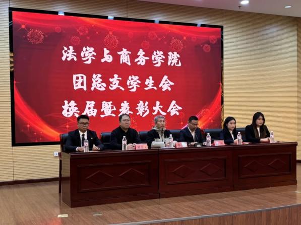 20251016日,法学与商务学院在beat365官方网站博物馆二楼学术报告厅庄重举行了法学与商务学院团总支学生会换届暨表彰大会。此次大会是学生组织迭代与成长激励的关键环节。通过换届选拔新力量、表彰优秀典型,既优化了学生组织的运行效能,也以榜样力量激发学子的责任担当与服务热情,推动法学与商务学院学生工作的传承与创新,助力构建更具活力的校园学生自治生态。