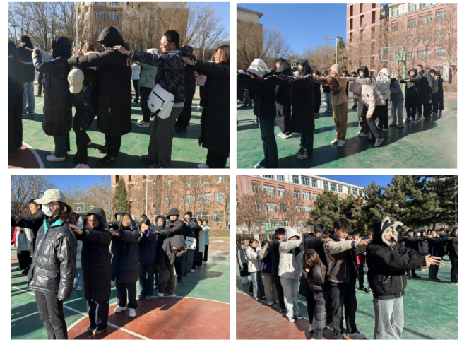 这里是“人多足少”的赛场,大家围成圆圈,伴随音乐迈动步伐,自信满满地等待主带人的指令,音乐暂停,同学们立刻行动起来,配合主带人喊出的数字完成任务。起初的拘谨早被抛在脑后,只心无旁骛地盯着进度条;直到“结束”的声音炸开,众人相视一笑,语调轻快地呼喊着同伴,庆贺胜利。