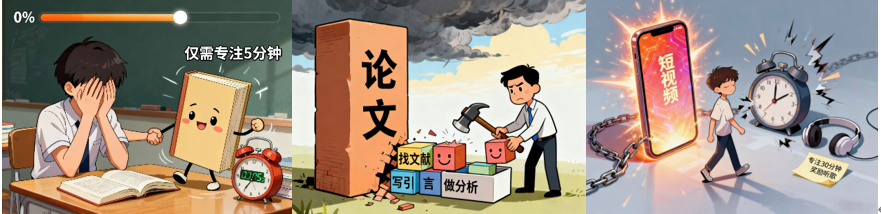 摆脱我的关键不是“靠意志力硬扛”,而是“顺从大脑的脾气,减少抵触感”。你可以运用“5分钟启动法”,通过仅专注5分钟来打破开始时的恐惧,从而自然而然地持续推进;你也可以将大任务拆成小步骤,如将写一篇论文拆成找文献、写引言等步骤来降低大脑压力;还可以给即时满足找个替代品,如专注30分钟奖励听一首歌,用可控愉悦替代无意义拖延。