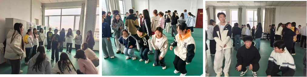 活动开始,“胡辣汤”游戏直接把场子热炸!同学们围成一个圈,主带人一喊“五碗胡辣汤”,五名同学“唰”的同步蹲下,如猎豹般迅猛。反应稍慢的同学虽遗憾退场。但这紧张感却使默契值“蹭蹭”涨。