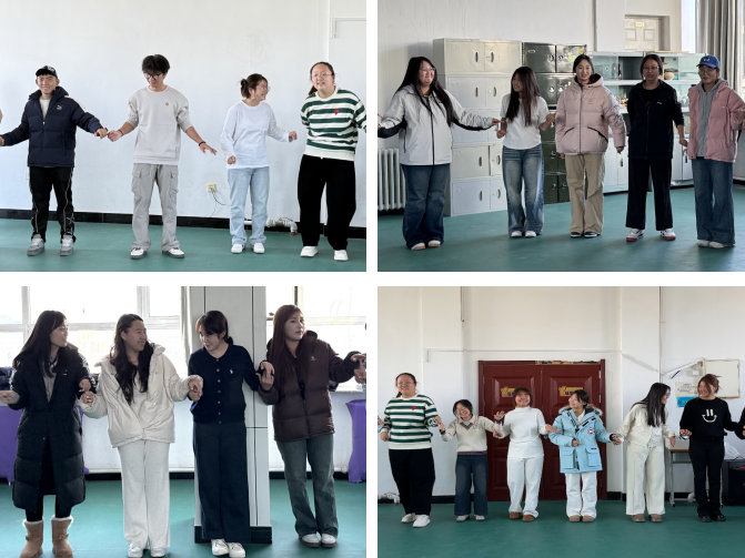 随着活动的激烈进行,同学们笑着凑在“乌龟与乌鸦”的圆阵里,当“乌龟与乌鸦”的故事响起,“乌鸦”二字成了触发键——左手急着去抓旁侧的食指,右手却要灵活躲闪,故事的节奏里,躲闪与抓取的互动,把陌生的距离越拉越近,活动室里呀盈满同学们的笑声。