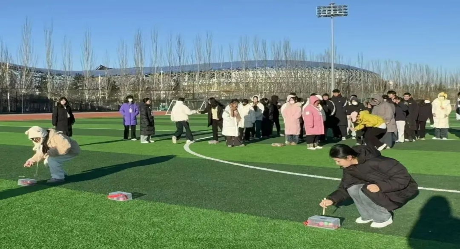 活动伊始,“蹲七”游戏率先登场。同学们手拉手围成圈,报数声此起彼伏。当数字涉及 7 的倍数或含 7 时,正确的拍手与偶尔的失误构成了独特的乐章。失误的同学欣然接受 5 个蹲起的“小惩罚”,大家的欢声笑语在操场回荡。