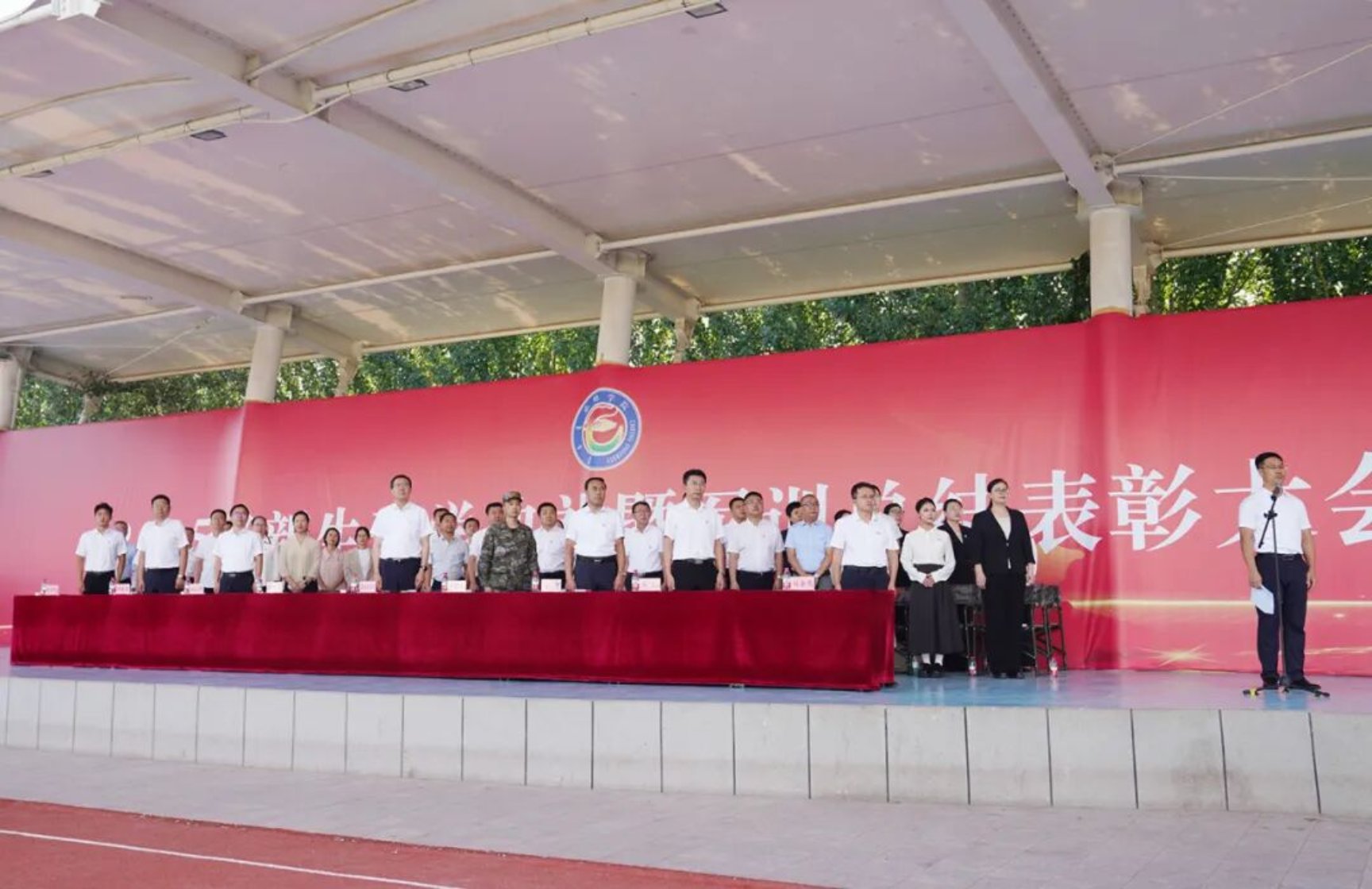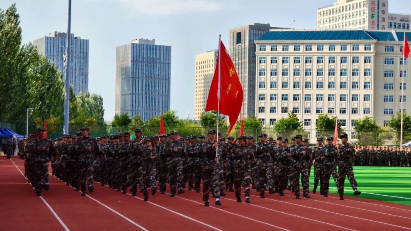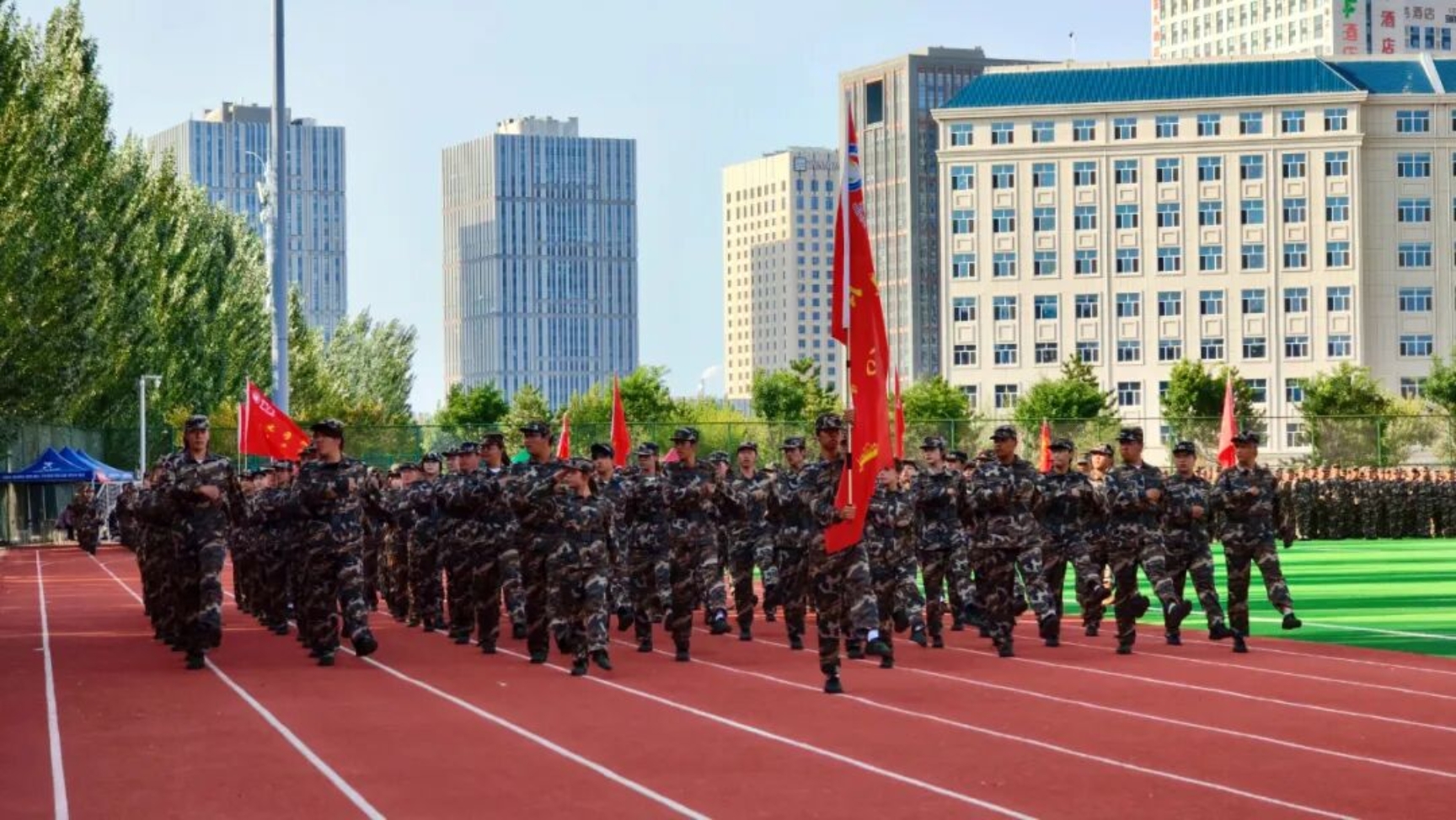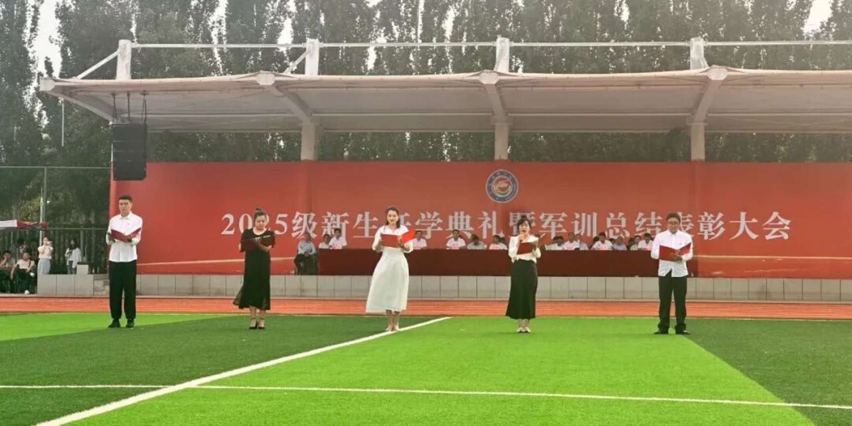 9月11日下午,beat365在田径运动场召开2025级新生开学典礼暨军训总结表彰大会。