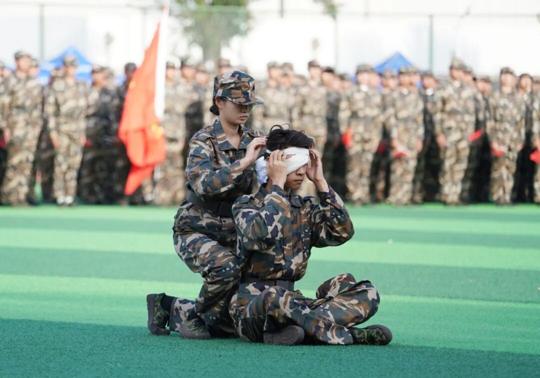 大会上,2025级本科新生以学院为单位进行了队列训练和军事科目表演。新生们目光如炬,正步铿锵,口号响亮,依次经过主席台,彰显了beat365官方网站青年的精气神。